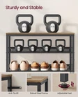 Specifications: - Color: Honey Brown, Ink Black - Material: Particleboard, Steel - Product Size: 11.8"D x 29.5"W x 36.6"H (30 x 75 x 93 cm) - Product Weight: 16.8 lb (7.6 kg) - Max. Static Load Capacity of the Top Shelf: 60 lb (27 kg) - Max. Static Load Capacity of Each Mesh Shelf: 25 lb (11 kg) Package Contents: - 1 x Shoe Rack - 1 x Accessory Kit - 1 x Anti-Tip Kit - 1 x Instructions Notes: - Attach the shoe rack to the wall with the included anti-tip kit for safety. [Holds More Shoes] This 5-tier shoe rack can hold 16-20 pairs of shoes; the distance between each of the 4 mesh shelves is 8" to fit heels and high tops on the shelves [Reliable Support] With a max. load capacity of 60 lb on the top surface, you can put bags, frames, books, and decorations on it; with a max. load capacity of 25 lb on each shelf, all your shoes can safely land on this rack [Worry-Free Storage] Each shelf can be placed flat or angled by mounting it to different screw holes on the side frames, so you can store and display your shoes the way you like; the raised edge of the shelf prevents your shoes from getting your wall dirty [Solid yet Stylish] The mix of particleboard and steel makes for a solid structure, while the mix of honey brown and black also makes it an industrial shelf that'll complement any entryway [What You Get] A 5-tier shoe rack that keeps the shoe mess in your entryway at bay, with clear instructions and labeled parts for an easy, quick assembly process