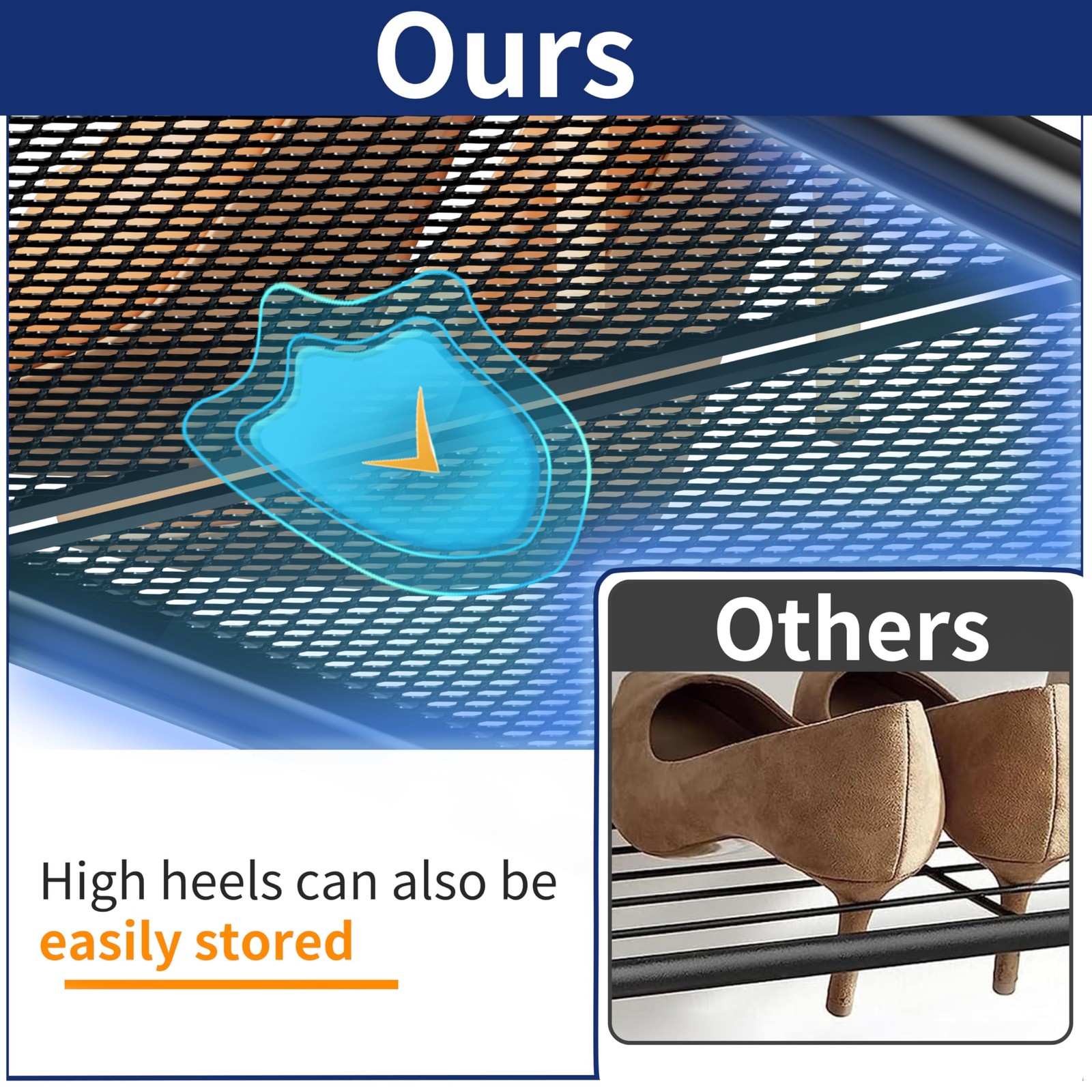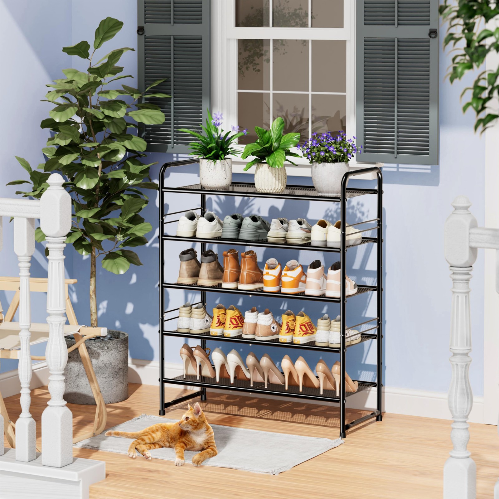 100% SATISFACTION: Money back guarantee ensures this will quickly become your favorite no-risk purchase. This makes a great gift for birthdays, anniversaries, Christmas, and anyone who just got a new shoe rack. Stores up to 24-30 pairs of shoes for men, women, and children, additional bottom storage for more shoes. Product Dimension: 32" W x 11.9" D x 38.98" H; With a height of 6.8 inches between shelves. Stackable Design: Include metal connectors and stack up to multiple units that maximizes storage space in the same footprint.(Purchase 2 and more units to build vertically storage) Sturdy & Durable Metal Construction is made of thickened metal tube with powder coated finish which is smooth and corrosion resistant. The densely spaced metal mesh is specially friendly to spike heels. Easy Assembly: Package include assembly tools and Simply clip the shelves into the frame, it only takes a few seconds.