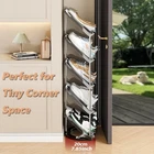 Sloping Narrow Shoe Rack 5 Tiers - Free Standing 5 Tier * 1 Pack, Clear Product Details Brand: Patinao Color: Clear Material: Plastic Recommended Uses For Product: Living Room, Bedroom, Hallway Product Dimensions: 11"D x 8.2"W x 39"H Installation Type: Free Standing Special Feature: Cordless Style: Modern Finish Type: Steel Load Capacity: 220.5 Pounds Number of Shelves: 1 Furniture Finish: Stainless Steel Frame Material: Stainless Steel Assembly Required: Yes Maximum Weight Recommendation: 10 Kilograms Manufacturer: Patinao Item Weight: 4.36 pounds Country of Origin: China The sloping design reduces the footprint of the shoe rack while actually increased the space for storing shoes (increased depth and height), allowing the shoe rack to hold taller and longer shoes. All kinds of shoes can be stored, such as Martin boots, sports shoes, high top shoes, children's shoes, sneaker, slippers, boots, high heels, etc More ergonomic design, makes finding, picking up and placing shoes easier, so that people bend less when picking up or placing shoes, especially for the elderly and kids is very friendly The tilted 45 ° design of the shoe rack panel reduces the footprint by 1/3, allowing for more shoes to storing in a smaller area and improving the utilization of space in your home. This shoe rack can also be placed in many narrow spaces. This shoe rack is very suitable for placing at the entryway, hallway, next to the door, bathroom, living room, and other places Sturdy Material: This shoe rack is made of high-quality PET plastic and stainless steel, which is sturdy and durable, and has strong load-bearing capacity. Compared with other wooden and cloth shoe racks, it has the characteristics of being non deformable and washable The tiers of the shoe rack can be freely spliced and combined. No tools needed to install, easy to install. This shoe rack can also hold books, snacks, paper towels and other daily sundries, a wide range of uses