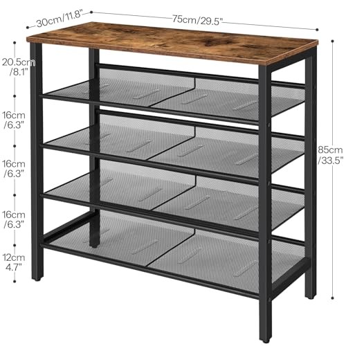 This shoe rack is a game-changer! It fits up to 16 pairs, and the mix of flat and slanted shelves keeps everything organized. Sturdy, stylish, and super easy to assemble—perfect for tight spaces. Delivery was lightning-fast, and the rustic brown finish adds a cozy touch to my entryway. Love it!