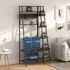 5-Tiers Ladder Storage Shelves, Freestanding Closet Organizer Clothes Rack Product details For a clothing rack that with the aesthetics of a decor piece, check out our Retro Entryway Clothes Rack. This was our favorite overall rack, boasting a natural, minimalist A-frame design made of metal that looks charming as an entry-way coat rack, bedroom clothing storage, or a decorative display for plants, books, etc. We provide various garment arrangement options and features 7 surprisingly stiff and sturdy wood shelving racks,grid area with 5 S-shaped hooks.Complete with a bench to sit on and remove shoes, this hall tree with bench has a bottom shelf which can hold multiple pairs of shoes or boots. Assembly is comparatively simple with this model. Product Specifications: Product Size: (LxWxH)40 x 16 x 72 inch/Weight:40lb Package Size: (LxWxH)41 x 18.5 x 9.5 inch Color:Brown Feature: Modern Aesthetics Design: Inspired by the popular industrial trend of modern furniture, this tree-like coat rack is not only a functional storage unit, but also rich in visual appeal. Five coat hooks, a grid area with lots of S hooks, and a bench to take off your shoes, all these useful features, plus a ladder-style bookshelf for displaying some ornaments and interiors plant. Versatility of Use: This entry coat rack with display area will be an attractive storage system in your home. The trapezoidal bookshelf can be used as extra storage for blankets, books and DVDs, or to display your favorite collectibles and photo frames. On top of this sturdy shoe cabinet, you'll find an extra shelf for home decor or indoor plants. Shelves can hold up to 40 lbs. and hooks can hold up to 10 lbs. Premium Frame Materials: Designed with a bit of modern industrial style, the black powder coated frame provides stability for this entryway hall tree. The long lasting manufactured wood is easy to assemble, and keeping this coat rack with shoe storage clean is as simple as wiping the frame and wood with a soft cloth. Multifunctional Areas: Comes with an 18" high bench for sitting and taking off your shoes for great convenience, and a shelf at the bottom of the bench to hold multiple pairs of shoes or boots. The grid area above the bench has S-shaped hooks for hanging smaller items like scarves and hats. Five black metal double coat hooks are sturdy enough to hold winter coats, backpacks and purses. The maximum bench seat weight is 220 lbs. Easy to Assemble: This Entryway Clothing Rack features compact and portable design. Assembly is easy with the help of the clear assembly manual. Easy enough to put it together in just under 35 minutes with just a screwdriver. So it is an ideal gift for who is not good at hands-on things. Friendly Service:We implement strict quality control and excellent after-sale service. Any defects caused by delivery or quality, we do provide reasonable compensation, and commit to reply all customer question within 48 hrs. Payment Delivery details Terms of sales About us Contact us Payment We only accept several paymeny ways as follow: Delivery details Your goods will be shipped within our handling time after your full payment. This excludes these locations: Alaska, Hawaii and Puerto Rico.APO/FPO’s are definitely excluded. Terms of sales Return: We accept return within 30 days,but we are not responsible for human damage.The return shipping cost is the buyer's responsibilities and try to keep it in your original package. About us We are selling all kind of ceiling fan,crystal chandelier,pendant lights in high quality with best discounted price. Our goal is providing all our customers 100% satisfaction and best customer service. Contact us If you have any questions please contact us through "Ask seller a question" link. We will respond within 2 business day or less.