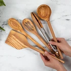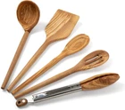 Natural and Safe Olive Wood Utensils: The olive wood utensils that we offer are made from natural wood. They are free from harmful chemicals and toxins, are safe to use with non-stick cookware, and won't scratch the surface. They are also non-reactive to food and beverages, so they are a healthy choice for cooking and serving. Cooking utensils are lightweight and easy to handle. 5-piece Set for All Cooking Needs: The set of olivewood utensils includes a turner, tongs, a slotted spoon, a ladle, and a spoon made from pure natural wood. These wooden spoons are perfect for stirring, mixing, draining, and serving. They include slotted spoons, spatula sets, pasta servers, and spatulas. They are perfect for cooking as well as serving. Strong Sturdy Olivewood: Our cooking utensils set is crafted and hand-finished from olive wood. Those who are familiar with olivewood kitchen accessories know this is the most durable of all timbers. And while they’re sturdy, they’re also gentle for your nonstick cooking set hand wash only, and dry them before storing. Care for your cooking stuff and they'll remain crack-free and always healthy for cooking. Comfortable Round Handle: Our kitchen utensils set features a thick and smooth round handle design, which is more comfortable to hold and will not feel tired when cooking. The sturdy and just the right size handles provide a good grip on your thumb. These wooden cooking utensils are 12" long, which is the perfect size for most cooking uses. Enjoy cooking together! Requires a Little Care: It is important to keep in mind that our olive wood spoons and spatulas are 100% handcrafted since olive wood is full of natural oils, so it is best to wash them gently to preserve their oils. It is not dishwasher-friendly; however, you can polish them with food-grade mineral oil or olive oil to keep them looking as good as possible.