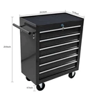 Package Size Length (in.): 26.37 Width (in.): 14.76 Height (in.): 27.95 Weight (lbs.): 57.09 Product Features 6 Drawers multifunctional tool cart with wheels The tool box is also lockable and can be used as a removable, attachable and mobile case The opening and closing of the drawers of the tool cabinet is very gentle thanks to the ball-bearing drawers The robust and powder-coated steel construction is used for high wear resistance. This assembly trolley has 4 steering wheels, 2 of which with parking brakes, so you can move the trolley freely in the garage, but also stop in one place Description Top&Drawer Liner Protect your tools scratches Ball-Bearing Drawer Slides Pull or push the drawer easily and smothly Key Locked Drawers With keyed locking system(2 keys in included) Flour Universal Wheels,Two Brakes Move easily anywhere and stop quickly with 2 lockable wheels Product Information Proudct Name 6 Drawers Workshop Tool Trolley Material Cold Rolled Steel Surface Finish Powder Coating Powder Coating 4" Casters (2PCS with brake and 2PCS without brake) Size 615*330*745 Drawers Dimension 540*300*85 Package Size 670*375*725 Color Black Net Weight 24KG Gross Weight 26KG