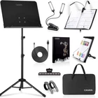 Sheet Music Stand with LED Light Desktop Book Stand with Carrying Bag, Sheet Music Folder & Clip Metal Portable Solid Back for Guitar, Ukulele, Violin Players Adjustable and Flexible: This black music stand Height can be adjust from 31.5 to 57 inch for your height needs, suit for school, orchestras, choirs, church bands, classrooms.2inch deep tray is enough to hold music sheet or books. Metal spring arm extensions hold music sheets and songbook securely in place. Wider Footprint Sturdy Tripod Base: The Sheet Music Stand tripod legs extend farther outwards for a steadier footing. Tripod feet are rubber-coated to hold a firm grip on the floor. Sturdy and Durable: The portable music stand main body made of 0.9mm thick steel (ordinary thickness 0.6mm-0.7mm), music tray can be tilted up to 180 degrees, giving users of any height an easy view of the sheet. Easy to Carry: The tripod music stand can be folded up and carried in a compact package with the provided carry bag. Extra Accessories: Come with music stand light, USB cable(power for music stand light), black carrying bag, sheet music folder, and music sheet clip holder. A4 sheet music folder with 40 pockets that can hold 80 music sheets.
