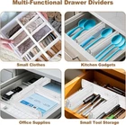 6 Pack Drawer Dividers for Clothes, 4" 6 Pack, 4"high,10-17"long LuxeFusion Product Description Features [Transparent and Sturdy Material]: This drawer separators is made of fracture-resistant plastic and with the anti-slip strips on both sides function as a shock-absorbing buffer, prevent the drawers effectively from scratches and scuffs, which is very durable for lasting long, keeping the items better organized and making the life more comfortable for you [Extensible and Adjustable]: With the height of 4 inches, the adjustable length of our drawer dividers for clothes ranging from 10" to 17", which can be easily installed in most drawers and cabinets, keeping your drawers tidy at all times [Multiple Placements]: The thickness of the drawer dividers is only at 0.5'', you can place these dresser drawer organizers vertically or horizontally for adapting the various sizes of the drawers, meeting your various organizing needs [Easy to Install and Retract]: This drawer organizer clothes is very easy to use, you can just adjust the divider to a suitable length before installation, the dresser organizer stays securely by robust spring tension and silicone friction. If you don't want use the dresser dividers, you can just press the button then push the panel back [Well-Organized Storage]: Our dividers for drawers organizer is a good helper for organizing clothes, baby clothes, underwear, socks, kitchen utensils, tools, toys, snacks, very suitable for kitchen, bedroom, living room, office, cloakroom, wardrobe, dresser space. You can create your customized storage in any drawer with our expandable drawer dividers Product Details Manufacturer: COKIHOM Part Number: drawerdividers-H4inch 6set Item Weight: 2.44 pounds Product Dimensions: 11.2 x 2.5 x 4.3 inches Country of Origin: China Item model number: drawerdividers-H4inch 6set Size: 6 Pack Color: 4"high,10-17"long Material: Plastic Shape: Square Item Package Quantity: 1 Mounting Type: Tabletop Mount Special Features: Adjustable Usage: storage tools Included Components: drawer dividers Batteries Included?: No Batteries Required?: No Free Shipping All orders ship free and fast to your doorstep. Easy Returns Satisfaction guaranteed. 30-day returns, no questions asked. 24/7 Support Contact us anytime; we’re here to help, day or night. Brought to you by LuxeFusion – Quality you can trust.
