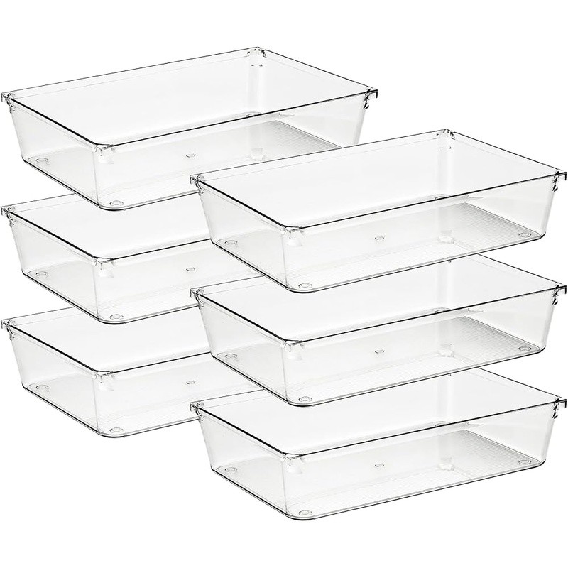 You may also like Clear Plastic Storage Boxes 4 Pack W/ Latching Lids Organizers Crafts Documents 37.29 USD 39.25 USD Free shipping 5% off Clear Storage Boxes Stackable Organizers W/ Lids BPA Free Odor Free Heavy Duty 32.96 USD 34.69 USD Free shipping 5% off Clear Photo Organizer W/ Handle 16 Storage Cases Holds 1600 Photos Portable Box 36.56 USD 38.48 USD Free shipping 5% off File Box Storage Organizer Clear Plastic Letter Legal Size Snap-On Lid Stackable 13.12 USD 13.81 USD Free shipping 5% off 2 Pack Clear Plastic Storage Bin W/ Snap-On Lid Stackable Household Organizers 17.49 USD 18.41 USD Free shipping 5% off Clear Storage Bin 41Qt Plastic Container Snap-On Lid Stackable Home Organizer US 14.45 USD 15.21 USD Free shipping 5% off Stackable Clear Storage Bin W/ Write-on Latches Modular Organizer 12.7 Qt New 10.2 USD 10.74 USD Free shipping 5% off 18 Compartment Organizer Box 3 Pack Clear Plastic Craft Fishing Storage Portable 24.04 USD 25.31 USD Free shipping 5% off Clear Storage Bin 20Qt Gasket Box 2Pack Sealed Container Stackable Organizer New 20.39 USD 21.46 USD Free shipping 5% off Plastic Storage Box 8 Pack Slim Organizer Clear Desktop School Office Supplies 27.73 USD 29.19 USD Free shipping 5% off Durable Plastic Footlocker Camping Storage Wheeled Lockable Organizer Portable 35.31 USD 37.17 USD Free shipping 5% off Medium Plastic Storage Bins 2 Pack Clear Stackable Organizers Home Office New 23.31 USD 24.54 USD Free shipping 5% off About this item Safe Material: vanity organizers are made of high-grade material, so the organizers are resistant to harsh sun exposure and will keep its crystal transparency for longer and reduce any dull appearances Non-Slip Pads Included: Unlike other systems that may slide around when opening and closing your drawer, this clear drawer organizers come with non-slip pad that will keep your organizer trays in place, just stick them on the bottom of the trays Make Everything Organized: This drawer makeup organizer is ideal for storing kitchen tools, craft supplies, makeup, jewelry, tools, and small accessories, keeping everything neatly organized and easily accessible Customizable with 6 pcs organizers: One set of the desk drawer organizers includes 6 storage bins that you can place together to create one—or many—highly-functional drawer organization systems. Includes: 6 x 9 x 2 inches (6pcs) Easy to Wipe Clean: You can easily wipe these organizers clean with a damp cloth, which is particularly helpful if you’re putting them in the kitchen or bathroom Specific Uses For Product: Cosmetics Material: Plastic, Acrylic Special Feature: Slip Resistant Color: Transparent Brand: Finish Type: Acrylic Product Dimensions: 6"D x 9"W x 2"H Shape: Square Number of Items: 6 Manufacturer: You may also like 6 Pcs 17 Qt Storage Box Bins Containers Organize Stackable Closet Plastic Clear 31.93 USD 33.61 USD Free shipping 5% off Rifle Shooting Stand Adjustable Front Rear Rest Bench Sighting Gun Support Rest 55.3 USD 58.21 USD Free shipping 5% off 54.5" Cat Tree Tower W/ Scratching Posts Condo Hammock 4 Perches Playing Gray US 56.99 USD 59.99 USD Free shipping 5% off Natural Chicken Brown Rice Dry Dog Food 15lbs No Fillers Supports Health New 25.75 USD 27.1 USD Free shipping 5% off 50" TV Stand Entertainment Center Storage Media Console Table Open Storage Shelf 81.84 USD 86.15 USD Free shipping 5% off Indoor Area Rug High Low Pile Stain Fade Resistant Skid Resistant 5Ft x 7Ft New 52.53 USD 55.29 USD Free shipping 5% off Pleated Air Filters MERV 8 HVAC Dust Pollen Replacement 4 Pack Household Indoor 68.72 USD 72.34 USD Free shipping 5% off 320lbs Capacity Chair Dolly 12 Chairs Steel Construction 2" Casters Assembled US 48.45 USD 51.0 USD Free shipping 5% off 16 Jar Spice Rack Revolving Vertical Storage Sifter Labeled Caps Free Refills US 47.49 USD 49.99 USD Free shipping 5% off Nonstick 10" Supreme Fry Pan All Cooktops Aluminum & Stainless Steel Easy Clean 44.93 USD 47.3 USD Free shipping 5% off 3 Light Farmhouse Wall Sconce Oil Rubbed Bronze Indoor Fixture Base Damp Proof 59.21 USD 62.33 USD Free shipping 5% off 4 Drawer Storage Tower Plastic Weave Organizational Unit BPA Free Home Decor New 31.44 USD 33.1 USD Free shipping 5% off