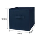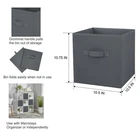 Our Mainstays Rich Black Collapsible Fabric Storage Bins are just what you need to help you create an organized home. Perfect for storing kids to adult clothes, books, electronics and more, these bins' 10.5-inch by 10.5-inch by 10.75-inch size offers plenty of room to keep a wide variety of belongings neatly tucked away and their sturdy handle allows you to pull them off shelves with ease. You can utilize our Mainstays Storage Cube's organizational expertise in your living room, bedroom, laundry room, or dorm room. When not in use, you can easily fold the bin down flat and keep it stored away in your closet for later. The fabric storage cubes are made to fit with our Mainstays Cube Storage Organizers and are designed with a durable fabric that holds up over time. With a variety of colors to choose from, you'll be able to perfectly match your home decor when you get organized with our Mainstays Collapsible Fabric Storage Bins. Helps you to create an organized and comfortable home Includes 6 black cube organizer bins Perfect for pairing with your favorite colors and patterns to mix and match Bin features an easy carry handle on the side that makes it easy to take the bin wherever you need to go Can be used with our Mainstays Cube Storage Organizer units or independently Cubes are collapsible when not in use to maximize your space Ideal for storing books or kids and adult clothing in the bedroom, living room, laundry room or dorm rooms Made of a durable fabric that won't crease easily, has good abrasion resistance and holds its shape Dimensions: 10.5" L x 10.5" W x 10.75" H (26.5 cm x 26.5 cm x 27.3 cm)