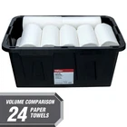 Description : 6 Pack Hyper Tough 27 Gallon Snap-Lid plastic storage bin, featuring a black base and red lid. Material & D urability : Made of long-lasting polypropylene, resistant to rust, dents, stains, and peeling, suitable for daily use both indoors and outdoors. Suitable I tems F or S torage : · Seasonal gear and sporting equipment. · Gardening tools and pet supplies. · Kids’ toys, games, and related gear (can be used as one of the go-to toy boxes or storage containers). · Shoes, clothing, tools, hobby supplies, etc. F eatures : · The red lid adds a pop of color. · Equipped with a secure 2-point closure, making it one of the most reliable storage bins with lids. · Specially molded design for easy stacking, allowing stackable storage to maximize space. Safety & V ersatility : · Comes with 6 built-in tie-down holes, enabling the lid to be lockable with zip-ties or padlocks; can serve as a secure outdoor storage box or patio storage box when needed. · Suitable for various scenarios such as basements, closets, sheds, attics, and garages, offering a clutter-free storage solution.
