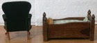 6 Pcs VTG Wooden Doll House Furniture Trundle Bed Arm Chair Cradle Rocker More Pieces include: armchair, cradle, trundle bed, spinning wheel, rocking chair and plant holder bench. Sizes range from 1.75"-5.75"h and 2"w-8"w. Rocking chair has label which reads Taiwan and spinning wheel is marked on side with Mt. Vernon, VA. Please see all photos for condition. From a smoke and pet free home. I do combine shipping.