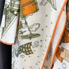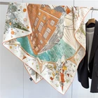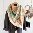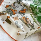 $ 12.81100% Pure Mulberry Silk Orange Horse Print Square Scarf 53cm Elegant Design