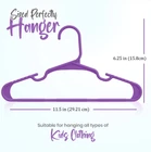 Kids Clothes Hanger – The pack contains non-slip and crease-resistant children hangers with each measuring, 11.5 x 6.25 x 0.21 (inches) dimensions. Ideal for hanging kids, toddlers and infants clothing Impeccable Fabrication - The kid’s clothes hangers comprises of reinforced plastic with built-in shoulder grooves, to prevent the baby clothes from slipping or falling off the hangers Space Saving & Patent Pending Design - Slim and smooth design increases the closet space of the nursery. Patent Protection (Pending) ensures unique construction & design protection. Ideal Gift – Great gift idea for all your loved ones for occasions like baby showers and children’s birthdays Care Instructions – It is recommended to rinse the infant hangers with a light soap. To remove any moisture, you may sun-dry them for a while or use a soft, dry cloth
