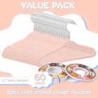 These hangers are amazing! The soft velvet keeps tiny clothes from slipping, and the 60-pack is perfect for organizing my toddler's closet. The dividers help sort outfits by size, making mornings much easier. High quality, sturdy, and super cute—totally worth it! Free shipping is a nice bonus too. Very happy with this purchase!