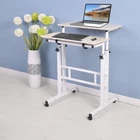 Features: 1. Made of density board and carbon steel bracket material, to use. 2. Can stand to use, relax the spine. 3. Double big desktop, practical and comfortable to use. 4. Height can be adjusted freely to your desired height. 5. With a roller, it can move and walk freely. 6. Slot design, have mobile phone holder and pen slot, very convenient. 7. Double pole support and movable host holder, firm and flexible. Specification: Condition: Brand New Material: MDF + Steel Color: White Maple, Dark Walnut (optional) Size: As picture shown Weight: Approx. 9100g / 321.0oz Package list: 1 * Laptop Desk