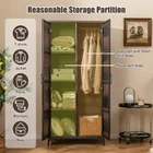 62" Wardrobe Armoire Storage Organizer Rattan Wicker With 2 Doors & Hanging Rod ● Elegant Wicker Design: Beautify your space with this storage cabinet, crafted from PE rattan for a chic and natural look. Its elegant wicker design is not only visually appealing but also contributes significantly to its durability and resilience against regular wear. ● Reasonable Storage Partition: Designed to meet various storage needs, this wardrobe features a hanging rod for storing clothing, outerwear, etc. Additionally, 4 storage cubes offer ample space to organize accessories and linens. ● Reliable Structure: Built with rugged galvanized pipes, the wicker wardrobe ensures long-lasting strength and reliability. The anti-toppling device and metal legs provide extra stability and support, keeping this storage organizer secure and wobble-free. ● Multifunctional Design: Not just for clothes, the wardrobe armoire serves as a versatile storage solution for your home, patio, or garage. It can suit a variety of storage needs, from household items to tools. ● More Thoughtful Details: Featuring soft-close hinges, the cabinet door closes gently and quietly, preventing loud noises. Besides, the bottom legs are fitted with protective foot pads to prevent scratches. Overview -Premium PE rattan offers long-lasting use and a stylish look -With a hanging rod to facilitate the placement of longer clothes and dresses -Can be divided into placement area, overcoat and short shirt hitch area -4 storage cubes keep T-shirts, jackets, pants, blankets, bags in order -Sturdy galvanized pipes provide great stability and support -Stable metal legs ensure a sturdy and reliable base -Equipped with anti-toppling device to prevent wobbling -Non-slip foot pads prevent the floor from scratches -Soft close hinge allows for smooth and quiet operation -Convenient handles are effortless to open and close the cabinet door -Modern wardrobe fits harmoniously with various home styles -Versatile storage cabinet for living room, bedroom, patio, or garage, etc Color Brown Material PE Rattan, Metal, Galvanized Pipe Product Size 28.5" x 19.5" x 62" Dimensions of Single Cabinet Door 56.5" x 13.5" Dimensions of Upper Storage Cube 14" x 19" x 14" Dimensions of Bottom Storage Cube 14" x 19.5" x 13" Height Between Each Storage Cube 14", 13.5", 13.5", 13" Length of Hanging Rod 12.5" Height from Hanging Rod to Bottom 54.5" Height Between Ground and Cabinet 4" Net Weight 55 lbs Weight Capacity of Hanging Rod 33 lbs Weight Capacity of Each Cube 33 lbs Total Weight Capacity 165 lbs