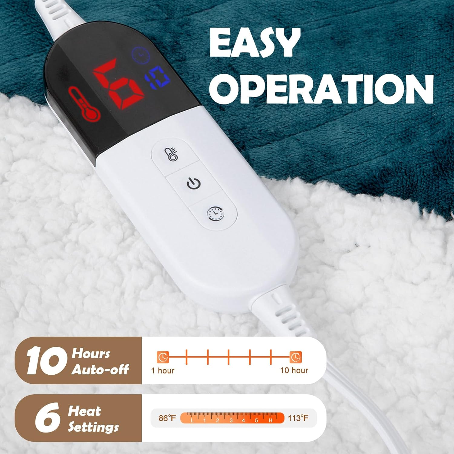 Store New Arrivals Add to Favorite View Feedback Contact Heated Blanket 62" X 84", Electric Blanket Twin Size with 10 Time Settings & 6 Heating Levels, Over-Heat Protection, Flannel Sherpa Super Cozy with ETL Certification, Blue Description Fabric Warmth Description Heavyweight Style Warm Weave Type Flannel Number of Items 1 Color Blue Pattern Classic Product Dimensions 84"L x 62"W Material Sherpa Water Resistance Level Not Water Resistant Fabric Type Flannel & Sherpa Item Weight 5.06 pounds Blanket Form Throw Blanket Theme Heated Blanket Age Range (Description) Adult Recommended Uses For Product Travel, Reading, Napping Seasons Winter Special Feature Skin-friendly Product Care Instructions Machine Wash Size 62"x84" Customizable Comfort: The electric blanket features 6 heat settings, allowing you to adjust the warmth to your personal preference. Equipped with a 10-hour timer, this blanket offers worry-free use. Simply set your desired tempurature and time and the heated blanket will automatically shut off after the set period. Luxurious Materials: Our Heated Blanket is crafted from a premium blend of flannel and sherpa fleece. The flannel provides a smooth and soft surface, while the sherpa fleece adds a thick, insulating layer, making it incredibly soft and cozy to snuggle up in. Versatile Use: This Heated Blanket is not just for keeping warm. It perfect for lounging on the couch, snuggling in bed, or even using as an extra layer of warmth on cold winter nights. Its stylish design also adds a touch of elegance to any room. Safe & Reliable: Safety is our top priority. That's why our Heated Blanket is designed with an auto shut-off feature. This means even if you forget to turn it off, the blanket will automatically shut down after the timer expires, providing peace of mind while you rest. Machine Washable: This heated blanket is completely machine washable. Simply remove the plug and throw the blanket in the washing machine. ( Wash at a maximum of 40℃/104℉) Product Description The video showcases the product in use. The video guides you through product setup. The video compares multiple products. The video shows the product being unpacked. Choose the One That Suits You Best! Add to Cart Add to Cart Add to Cart Add to Cart Add to Cart Customer Reviews 4.5 out of 5 stars 150 4.5 out of 5 stars 150 4.5 out of 5 stars 150 4.5 out of 5 stars 150 4.5 out of 5 stars 150 Price $39.99 $ 39 . 99 $59.99 $ 59 . 99 $69.99 $ 69 . 99 $79.99 $ 79 . 99 $89.99 $ 89 . 99 SIZE 50" x 60" 62" x 84" 72" x 84" 84" x 90" 90" x 100" COLOR Gray & Blue Gray & Blue Gray & Blue Gray & Blue Gray & Blue HEAT SETTINGS 6 6 6 6 6 AUTO-OFF TIMER 4 10 10 10 10 MATERIAL Flannel & Sherpa Flannel & Sherpa Flannel & Sherpa Flannel & Sherpa Flannel & Sherpa MAINTENANCE Dry-Cleaning / Machine Wash Dry-Cleaning / Machine Wash Dry-Cleaning / Machine Wash Dry-Cleaning / Machine Wash Dry-Cleaning / Machine Wash ABOUT US We offer the best prices around on high quality products. Our E-store includes media such as books, movies, music and games while offering electronics, toys, sporting apparel, clothing, tools, general home, garden items and more. SHIPPING We are always working hard to ensure your package arrives as soon as possible. Please understand that some factors like weather, high postal traffic, and the performance of shipping companies are outside of our control. We offer free shipping to the lower 48 states and ship within 2 business days of payment, usually sooner. We do not accept P.O. Boxes. Please provide a physical address. For shipping outside of the continental USA, we only use eBay's Global Shipping Program.The item is shipped to KY and then sent to the rest of the world. International customers are responsible for all duties and taxes. Continue to check out in order to calculate costs for shipping the item to your country. Messages regarding eBay's Global Shipping Program MUST be directed at eBay EXCLUSIVELY. RETURNS We offer a 30-Day Return Policy on items which you are not completely satisfied with. You have the option for a full-refund or an exchange of the item. No returns are available on items shipped outside of the USA. PAYMENT We accept PayPal. CONTACT US This page content is yet to come Please ad us to your favorite seller and visit again later Thank You CUSTOMER SATISFACTION We try our very best to make sure every customer is completely satisfied. If there's a problem, message us! We're happy to help.