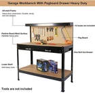 63" Workshop Table Work Bench Garage Steel Tool Storage Drawers Shelves Work Bench Delivery time: immediate Product Features: Brand new and high quality Ideal for business or personal use Solid steel frame and durable MDF construction Includes back peg board for organizing tools Drawer offers extra storage for smaller items Bottom shelf for storing large and heavy tools Assembly needed with assembly instruction Size: 64" (H) x 48" (W) x 24" (D) Color: Black Description Delivery Returns Description: ★ Durable and 300Lbs Carrying Capacity---Made of solid steel frame and heavy duty MDF panel, high quality craftsmanship and strict quality control are used in the manufacturing process to ensure that each workbench is sturdy and stable enough to hold up to hard use in the workshop. The work surface can handle the heavy load of tool storage, holds up to 300 lbs. • ★ Perfect Workbench---Features comfortable height for work while seated or standing; MDF worktop provides ample space for a multitude of operations and tool solution. • ★ Smart Tool Storage---A peg board with hooks are ideal for hanging small tools, easy to take on and off. And a drawer with 2 handles is designed for more tools storage. • ★ Waterproofing and Rust Prevention---Powder-coated finish makes it resistant to water and rust, as well as the non-slip rubber feet adds stability and do not scratch your floor. • ★ Simple Assembly & Recommended Use---Assembly needed with assembly instruction (step by step diagrams and all necessary hardware include), this workshop and garage essential workbench is ideal for commercial, home, garage or office use. Specification: Material: steel and MDF panel Overall dimension 64" (H) x 48" (W) x 24" (D) Max weight capacity: 300lbs Package include: 1 x black working bench Please refer to the picture to get more size information We strive to deliver products within 2-3 days (Mon - Friday 9am - 6.00pm) after payment has been received. We use the best couriers available to us to ensure that your product is received on time and in great condition. Please ensure that someone is available to sign for the item as signatures are required. No Delivery Zones Due to geographical and logistical restrictions, we are sorry to let you know that we are not able to deliver our products to areas listed below. Excludes: Alaska/Hawaii, APO/FPO, US Protectorates, Africa, Central America and Caribbean, Middle East, South America, Brunei Darussalam, Cambodia, Hong Kong, Indonesia, Laos, Macau, Malaysia, Philippines, Taiwan, Thailand, Vietnam, Bermuda, Greenland, Mexico, Saint Pierre and Miquelon, American Samoa, Cook Islands, Fiji, French Polynesia, Guam, Kiribati, Marshall Islands, Micronesia, Nauru, New Caledonia, Niue, Palau, Papua New Guinea, Solomon Islands, Tonga, Tuvalu, Vanuatu, Wallis and Futuna, Western Samoa, Afghanistan, Armenia, Azerbaijan Republic, Bangladesh, Bhutan, China, Georgia, India, Kazakhstan, Kyrgyzstan, Maldives, Mongolia, Nepal, Pakistan, Russian Federation, Sri Lanka, Tajikistan, Turkmenistan, Uzbekistan, Albania, Andorra, Belarus, Bosnia and Herzegovina, Bulgaria, Croatia, Republic of, Cyprus, Czech Republic, Estonia, Finland, Gibraltar, Greece, Guernsey, Iceland, Jersey, Liechtenstein, Macedonia, Malta, Moldova, Monaco, Montenegro, Norway, Poland, Romania, San Marino, Serbia, Slovakia, Slovenia, Svalbard and Jan Mayen, Switzerland, Ukraine, Vatican City State, PO Box, Angola, Cameroon, Cayman Islands, Libya, Suriname, Guyana, Panama, Mauritius, Chad, Madagascar, Bahamas, Iran, Saint Kitts-Nevis, Western Sahara, Bolivia, Congo, Republic of the, Seychelles, Sudan, Guadeloupe, Venezuela, Somalia, Burma, Cuba, Republic of, Reunion, Yemen, Barbados, Belize, Liberia, Sierra Leone, Central African Republic, Martinique, Dominica, Niger, French Guiana, Saudi Arabia, Nicaragua, Anguilla, Antigua and Barbuda, British Virgin Islands, Cape Verde Islands, Honduras, Saint Vincent and the Grenadines, Turks and Caicos Islands, Botswana, Eritrea, Swaziland, Lesotho. In the unlikely event that your item is lost or damaged in transit, please do not worry. Your item is sent on a fully insured service and we will offer you a full refund or replacement item and will deal with any issue fast! Proof of postage and delivery is available on all purchases. Should your item arrive damaged (damage to the item, not to the packaging) we ask that you do not sign for the item and instead insist that the item is returned to us. Should this be the case please contact us immediately. If you are unsure if the item has arrived damaged, please simply sign for the item as damaged and then inspect the contents of the package when able to do so. Should you wish to return your item for any other reason please contact us to discuss the return process. You must first obtain written consent from us whereby we will supply you with with further details including a return code. All returns must be received within 30 days of purchase. Support Mail support within 24-48 hours If you are collecting the goods yourself, please give us a short notice beforehand. SHIPPING US: FREE PAYMENT Payment should be completed within 7 days after buyer places the order,or else an unpaid case will be opened in order to cancel the transaction. If you can not pay in time, please contact us. ContaCT If you have any comments, good, bad or indifferent we would love to hear from you. Thanaddo 2012