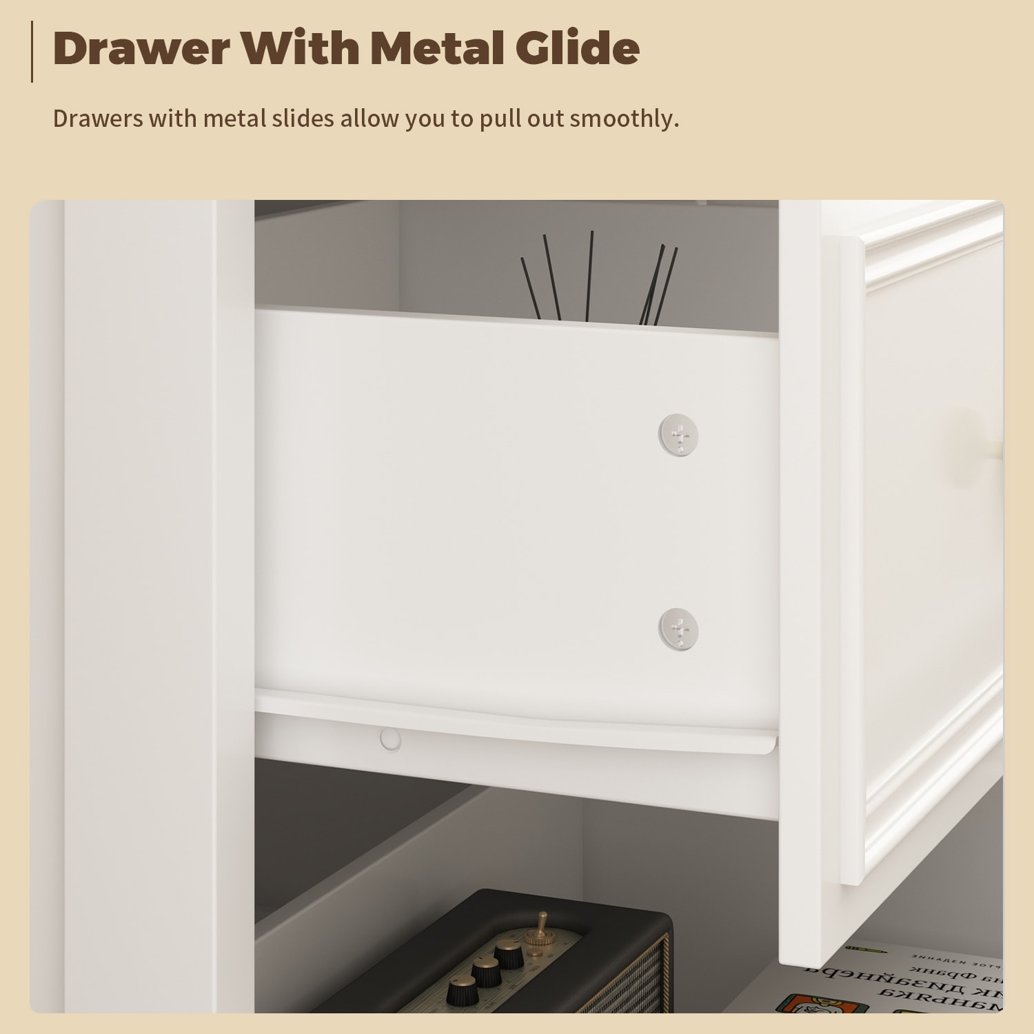 Upgrade your bedroom storage with our 63"W Wood Dresser. This 9-drawer organizer flaunts a chic design with clean lines and round legs. Crafted from solid and engineered wood, it features a crisp white finish and soft gold handles that add visual interest. The large volume drawer locker rolls out on metal glides, proving ample space for your wardrobe and linens. With a lacquer finish, this dresser is a stylish and practical addition to your closet. Wall anchor included for added safety.Features: Soft gold handles add visual interest Large volume drawer locker Lacquer Finish Solid and engineered wood construction 9 drawers with metal glides Wall anchor included for added safety Free Shipping Over $49.99* Details 63"W Wood Dresser Bedroom Storage Drawer Organizer Closet 9 Drawer Product Description: Upgrade your bedroom storage with our 63"W Wood Dresser. This 9-drawer organizer flaunts a chic design with clean lines and round legs. Crafted from solid and engineered wood, it features a crisp white finish and soft gold handles that add visual interest. The large volume drawer locker rolls out on metal glides, proving ample space for your wardrobe and linens. With a lacquer finish, this dresser is a stylish and practical addition to your closet. Wall anchor included for added safety. Features: Soft gold handles add visual interest Large volume drawer locker Lacquer Finish Solid and engineered wood construction 9 drawers with metal glides Wall anchor included for added safety
