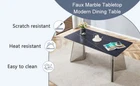 63" Marble-Patterned Slab Dining Table Modern Kitchen Table w/Steels Legs