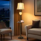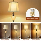 Size and Design: This floor lamp is 64'' high and 13'' wide, it can be placed in small spaces. The soft bell shades are made of faux silk, the farmhouse style design can be matched with any home decor. Perfect for living rooms, bedrooms, and study rooms Soft Night Light: (120V Only) The night light uses clear resin for the lampshade and carved leaves pattern with elegant appearance. The soft light from the night light is suitable for accompanying you to read, watch TV and sleep Metal Tray: Rustic floor lamp with 12.5 inch round tray can be used as a bedside table. You can place cups, books, cell phones and other items on it. The tray is made of metal, you don't have to worry about easy scratching and cleaning problem during use 4-Way Rotary Switch: The main light and night light can be turned on separately or at the same time. This feature allows you to adjust the lights according to different needs. The switch is on the lamp base, easy to open also more hidden and beautiful Easy to Assemble and Sturdy: We have simplified the assembly steps of the floor lamp. You can assemble it in 10 minutes without tools. The heavy base makes the farmhouse standing Lamp more stable and prevents it from being knocked over by children or pets