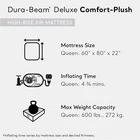COMFORT: With a bed height of 22" this luxurious and unique dual-layer air pocket system contours to your body for supreme comfort; with a velvety top and sides that are soft to the touch, and resist punctures and abrasions; on-the-go carry bag included.Amperage : 0.65 A UNIQUE EDGE CONSTRUCTION – Dura-Beam Air Mattresses are designed with a unique edge construction to withstand the weight of the sleeper without sagging and is 100% more durable, 35% more supportive and 15% lighter than a traditional airbed LUMBAR SUPPORT – Horizontally positioned Dura-Beams provides 50% greater individual strand count for an improved full body support; Fiber-Tech Construction is comprised of thousands of high-strength polyester fibers for amazing durability and strength BUILT-IN AC ELECTRIC PUMP – High-Powered built-in electric pump (110-120V) for hassle-free inflation and deflation; users can easily and quickly set up the air mattress when they need it and then deflate it (Approximate inflation time 4.75 minutes) STRETCH – At first inflation the material will STRETCH, which is sometimes misinterpreted as leaking; You will sense a loss of pressure, that's just the bed stretching, simply re-inflate the bed again; the bed will fully settle within 2-3 nights Product Description 1 DURA-BEAM Air Mattress 2 FIBER-TECH Construction Key Features Specifications