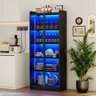$ 100.32Farmhouse Bar Cabinet with LED Lights, Power Outlets & Storage
