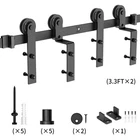 $ 18.128FT Double Sliding Barn Door Hardware Kit for Wood Slabs - Garage Installation
