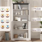 67" Tall Kitchen Pantry Cabinet, Farmhouse Storage Cabinet with 2 Barn Doors & Open Display Shelves, Bathroom Storage Cabinet, Versatile Large Wood Cupboard Hutch for Dining Room, Living Room Product Description About this item Ample Storage Space & Adjustable Shelf: Size: 15.7D×31.5W×67H. This 5 tier kitchen pantry cabinet consists of 3 open display shelves and 1 storage cabinet, providing ample storage space. The shelves inside the cabinet are adjustable, allowing you to customize the space according to your needs Farmhouse Storage Cabinet: Our barn door storage cabinet features a classic white finish, black top, simple lines, and elegant door handle design. Perfectly integrating modern aesthetics with rural elements, it can easily blend with most decorative styles and is the perfect choice for kitchens, dining room, living room, bathrooms, or study rooms Durable & Stable Construction: This tall storage cabinet is made of high quality wood and hardware for a sturdy and durable construction. Each shelf can hold up to 25/35 pounds. The stable base and anti-tipping design enhance the overall stability and load-bearing capacity. You don't have to worry about the quality at all, this tall cabinet is your best choice Multi-functional Use Scenarios: Engineered for versatile spaces! Perfect as a kitchen storage cabinet, pantry cabinet, bathroom storage cabinet, bookshelf, or entryway organizer, combining farmhouse aesthetics with modern functions to create a comfortable living space Easy to Assemble: All parts and accessories of the storage cabinet are labeled. The instructions are easy to understand, so there will be no jamming during assembly. If you have any questions, please feel free to contact us and we will reply within 24 hours Tall Storage Cabinet with 2 Barn Doors and Open Shelves Different areas are reasonably divided to meet diversified storage and display needs, easy to create a neat and beautiful home space! Previous page Kitchen Pantry Cabinet Whether it's creating a neat and organized cooking environment or showing off your living style, it's easy to do, adding practicality and beauty to your kitchen. Bathroom Storage Cabinet Let the bathroom to say goodbye to clutter, all kinds of items placed in an orderly manner, every time you use a happy mood, easy to create a neat and cozy bathroom space. Farmhouse Bookshelf It can be used to place books and favorite decorations, with a properly planned layout, you can say goodbye to clutter and create a quiet, cozy and stylish atmosphere for reading and working. Next page Farmhouse Style Cabinets are Both Stylish and Functional SPECIFICATION Material: Engineered Wood Color: White Product Dimension: 15.7"D x 31.5"W x 66.9"H Weight: 78.3lbs Max.Load: Each Shelf 25/35LBS Unique Design: 2 barn doors, 3 open display shelves, adjustable shelf Number of Doors: 2 Number of Shelves: 3 Style: Farmhouse, Rustic Applicable Scene: Tall Storage Cabinet for Kitchen, Dining Room, Bathroom, Living Room, Study Room... Hidden storage cabinet can effectively prevent dust and protect private items; 3 open display shelves are convenient for displaying favorite items and adding a touch of lifestyle.