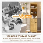 Product Description About this item • Spacious Multi-Surface Storage: Store towels, toilet paper, and essentials effortlessly with three open shelves, one large drawer and one enclosed cabinet. The floor space of 15.74"W x 12"D maximizes space in bathrooms or kitchens while keeping items organized • Premium Bamboo Durability: Made from preminum bamboo, harder than wood, 30% lighter weight. This cabinet is not only durable but also eco-friendly. Its natural material is resistant to moisture, suitable for long-term use in the bathroom environment • Safety First Design: Wall-mounted anti-toppling system included (hardware pre-drilled) and rounded edges prevent injuries. This feature is especially crucial in homes with children or pets, offering peace of mind by preventing accidental toppling and enhancing overall safety • Versatile Use: This Bamboo Freestanding Storage Cabinet is a perfect choice for small place, providing extra storage. This Storage cabinet can also be used in the living room, kitchen, laundry room, dining room to help you organize personal belongings • Space Optimized Dimensions: Overall size: 15.74" W x 12" D x 68" H; Overall open shelves size: 14.4" W x 11.5" D x 35.4" H; Cabinet interior size:14.2" W x 11.4" D x18" H; Each shelfs load capacity: 44lbs