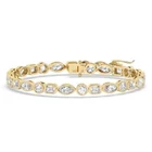 This 6Ct Round Simulated Diamond 925 Yellow Sterling Silver Women's Tennis Bracelet features a dazzling design with a tennis link chain and a snap closure. The bracelet is handmade with sterling silver and showcases a round simulated diamond as the main stone, set in a bezel style. It has a personalized touch, adjustable length, and is engraved with various themes like Beauty, Fashion, Love, and more. Ideal for special occasions like Engagement, Anniversary, Birthday, or Mother's Day, this elegant piece is nickel-free and comes with a seller warranty for added assurance.