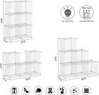 LARGE CAPACITY STORAGE: Each cube size is 11.8"L X 11.8"W X 11.8"H (30 x 30 x 30 cm).The product dimensions is: 36.6”L x 12.4”W x 36.6”H, Large capacity to meet your different storage needs, and it fits storage bin that is smaller than 11.5 x 11.5 inches MULTIFUNCTION: Multifunctional metal storage has a modern industrial an ideal choice to your living room, bedroom, corridor or kitchen etc.Perfect as a storage rack for clothes, books, shoes, toys, bags, artcrafts, potted plants,ball of wool and other necessities.Within the number of panels, you can also install a pet fence to give your pet a home STURDY & DURABLE: The durable ABS plastic connector secure the whole structure firmly and the metal wire panel is sturdy and durable that can hold more things,the maximum load capacity of each cube is up to 22 pounds EASY ASSEMBLY: Simple modular structure makes it easy to assemble and disassemble. Only need to fasten the panels together with connector tightly, with the help of the wooden mallet, you can easily install the whole product, or create different cubes to fit different spaces CUSTOMER SERVICE: Customer service 24/7 standing by, we are always available to provide a professional customer service pre-sale and after-sale service