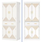 72" Tall Cupboard Storage Cabinet with a Drawer & Adjustable Shelves 4 Doors Freestanding Buffet Food Organizer Carved Design Door for Kitchen, Dining Room, Living Room, White Product Description NOTE: Professional Installation would be Highly Recommended. Description: 1. Color: White 2. Material: Engineered Wood 3. Handle Material: Steel 4. Room Placement Recommendation : Entryway, Kitchen, Living Room, Hallway, Dining Room 5. Special Features : Adjustable Shelf, Anti-tipping, Magnetic Suction, Guide Rail Design, Metal Handle Features: 1. Spacious pantry with lots of storage: This pantry provides generous storage with two large cabinets, one sliding drawer, and six door shelves, offering ample space to organize everything from food supplies to dinnerware and kitchen tools, making it versatile for placement anywhere. 2. Moveable Shelves For Different Sized Things: This modern, freestanding tall kitchen cabinet offers customizable storage with four adjustable shelves. Each of the top and bottom shelves includes dividers that can be set to three different heights, allowing for flexible storage of items in various sizes. 3. Durable Sideboard with Safety Features: This sideboard is constructed from high-quality engineered wood, ensuring durability and stability with a weight capacity of 300 lbs. It features magnetic supports for easy door operation, water-resistant coatings for longevity, and an anti-tip kit for safety, making it a robust and secure storage solution. 4. Multi-purpose Storage Cabinet with Stylish Design: This versatile storage cabinet serves multiple purposes: it can be a pantry in the kitchen, a bookcase in the study, or even a TV stand in the living room. Its unique triangle carvings and modern gold handles add style and functionality, making it a stylish and practical addition to any space 5. Stylish and Practical Pantry Cabinet: This artistic pantry cabinet features a unique inverted triangle carving and modern gold handles, adding style and character to your space. Its design not only enhances the look of your kitchen but also makes cleaning the floor easier. 6. Easy to Assemble: The cabinet is easy to assemble with clear, step-by-step instructions and numbered parts. For quicker setup, it is recommended that two people work together to assemble it. Dimensions: 1. Product Dimensions: 30.1"L x 15.7"W x 72.4"H 2. Drawer Dimensions: 25.6"L x 13.8"W x 4.7"H 3. Top Larger Door Dimensions: 13.4"L x 34.3"H 4. Bottom Door Dimensions: 13.4"L x 25.2"H 5. Weight Capacity Each Shelves : 60 lb 6. Weight Capacity: 300lbs Package Included: 1 x Storage Cabinet 1 x Accessory Kit 1 x Instructions Tips 1. Select the appropriate size for your needs prior to purchase. 2. The actual product's color may be a little different compared to website photos. Shipping 1. Normally the item will be dipatched within 1 business day if payment is cleared before 12pm PST. 2. Please verify the correct shipping address in your PayPal account before making the payment. We only dispatch the item to the address that is sent to us at the time of checkout. 3. We don't ship to Hawaii, Alaska, Puerto Rico, APO/FPO/PO Boxes. 4. We don't provide local pick-up service. 5. Normally we will use USPS, UPS, FedEx & LTL to dispatch items. Payment 1. We accept PayPal and credit card. 2. We will ship to the confirmed Paypal shipping address that is provided with the payment only. Return 1. 30 days Money Back Guarantee. 2. Please contact our customer service to receive a RMA form first if want to return the item. 3. All returned items MUST in new condition with the original package. Contact If has any problem, please contact us by sending an ebay message. Our customer service will resolve the problem as soon as possible. On Aug 7, 2024 at 01:12:17 PDT, seller added the following information: On Mar 10, 2025 at 23:38:03 PDT, seller added the following information: