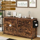 Dresser with 6 Drawers Bedroom Furniture Storage Chest Organizer Closet Cabinet Item Description: Vintage Charm: Our Retro Chest of Drawers exudes timeless charm with its vintage-inspired design. The antique handles on each drawer add a touch of elegance and nostalgia to any room. Spacious Storage: This chest features large drawers with two antique handles on each, providing easy access to your belongings. The generous drawer height of 21" allows you to store a variety of items, from clothing and accessories to household essentials Black Storage Bag: Included with the chest is a black storage bag, offering a convenient solution for organizing smaller items. Keep your accessories, socks, or other small items neatly tucked away in this stylish and functional bag. UL-certified US Plug: Our Retro Chest of Drawers comes with a UL-certified US plug power strip. With a cord length of 1.5 meters, you can easily connect your electronic devices and conveniently charge them within reach. Durable and Stylish: Crafted with quality materials, this chest of drawers is built to last. The combination of its retro design and practical features makes it a versatile addition to any room, whether it's a bedroom, living room, or hallway. Multifunctional Dresser: The wide dresser provides solid stability for ample load bearing and spacious storage space. The wooden rattan dresser can be used as a perfect wood storage chest for your bedroom, entryway, closet, hallway or as a TV stand for the living room. Also you can use it as nursery dresser. Specifications: Color: Grey/Brown/Dark Rustic Oak Material: Engineered Wood Size:59"x31.1"x15.9" Package Includes: 1 x 6 drawers dresser 1 x Instruction More Display: Shipping ● The shipping rates listed are only for residential or commercial destinations in the continental 48 United States. All international sales will go through eBay Global Shipping Program.please ask us if there are any questions. ● We only ship the item to the address that is sent to us at the time of checkout. Please verify the correct shipping address in your PayPal account before making your payment. If we ship your item to an old or invalid address and you are not able to locate the item, we are not responsible for shipping a replacement. ● Currently, we do not ship to Hawaii, Alaska, Puerto Rico,APO/FPO/PO Boxes. ● We use USPS, UPS & FedEx as shipping method. ● Payments cleared before 12 PM PST, will be shipped on the same day. Payment ● We accept PayPal and all forms of credit card. ● We will only ship to the confirmed Paypal shipping address given with the payment. ● We do not offer local pick up service. Return ● 30 days Money Back Guarantee. ● If any package that needs to be returned, please contact our customer service first to receive a RMA form. ● All return items MUST be in brand new condition. About On Aug 13, 2024 at 23:06:28 PDT, seller added the following information:
