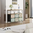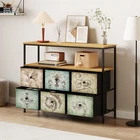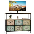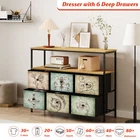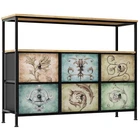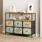 Material: Iron Parts: Main frame Square Tube 16*16*0.6MM. Wooden Board: 15mmp2 chipboard; with Cloth Drawer, Solid Wood Round Handles Product Dimensions : D 11.8 " * W 38.5 " * H 29.5 " (98*30*75 cm) Number of Drawers 6 Material:Metal Frame, Wooden Desktop, Fabric Drawers Finish Type:Wood Style:Retro Mounting Type:Floor Mount Room Type:Dressing Room, Living Room, Bedroom, Study Room, Hallway Descriptions: 【Sufficient Storage Space】 The vertical dresser measures 38.5" W x 11.8" D x 29.5" H.This bedroom dresser with 6 fabric drawers provides large storage space and is ideal for organizing clothes, blankets, toys. Wood top provides hard surface for displaying lamps, alarm clocks, books, eyeglasses, etc. 【Materia】 The fabric dresser is sturdy steel frame and wooden waterproof wooden top triangular stable structures to make it sturdy under load 80lb. The four adjustable table legs of our drawer locker are equipped with foot pads that safeguard your floor from scratches while ensuring the dresser stays stable on uneven ground. Anti-tipping accessories are also equipped to prevent accidents. 【Multifunctional use】 The foldable drawers can not only be used to store clothes, shoes and other items, but also can be used as a TV cabinet, bookcase or decorative cabinet. This versatility makes the drawer chest meet people's diverse needs, save space and procurement costs, and become an ideal choice for home decoration. 【User-Friendly Detail Design】 The floral drawer with a retro floral pattern and simple design, it's perfect for placing in the bedroom, living room, corridor, game room, or office. The drawer cabinet is anti-tipping design. When it comes to cleaning, simply wipe it down with a damp cloth and air dry. 【Easy Assembly 】 The chest of drawer is easy to assemble with tools included in the package, you can refer to the Installation instructions. Or contact us for an installation video. On May 21, 2024 at 23:41:52 PDT, seller added the following information: