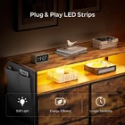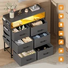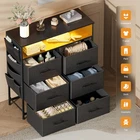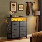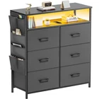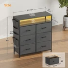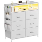 【Large storage space】 This dresser is equipped with six enlarged and deepened storage drawers (each 14.6"x11.1"x7.9"), complemented by open shelves (31.5"x11.8"x4.7") and a 3-tier side organizer pocket; It efficiently categorizes bedroom clothing, living room essentials, or office documents, adapting to diverse storage needs while keeping spaces neatly organized; Dresser tops made from FSC certified wood 【Sturdy and durable】 Features a premium thick metal frame paired with high-quality particle board desktop, this chest of drawers delivers exceptional load-bearing capacity up to 220 lbs for long-term durability; Round adjustable feet at the bottom enhance stability while protecting floors from scratches; Included anti-tip straps secure the unit, preventing accidental tipping that could harm children or pets 【LED Lighting Design】 This bedroom dresser has an under-desktop LED strip that lights up instantly when plugged in; It emits soft, eye-friendly light with low energy use, offering quick lighting for nighttime needs and daily convenience; It also creates a warm, romantic vibe in your free time 【Multifunctional & Versatile】 With a modern minimalist design and multiple color options, this storage cabinet seamlessly fits into various scenarios; It can serve as a bedroom clothes storage cabinet, a living room miscellaneous storage/TV stand, an office file cabinet, or an entryway shoe cabinet, making it an ideal choice for modern furniture; The open shelf is perfect for displaying decorative items, books, potted plants, etc., keeping spaces tidy while adding a touch of lifestyle charm to your home 【Easy to Assemble & After-Sale Service 】Detailed instruction manual and necessary installation tools are included in the package of the dresser, you can easily finish the assembly in less than 30 minutes; You can contact us with any product questions, our experienced and professional customer team will provide you with 7*24 hours of premium service