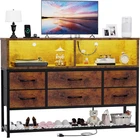 LED Dresser with Charging Station: The dresser for bedroom with a charging station and LED light, combines functionality with romantic style. You can easily control these LED lights with the included remote control or app to create ambience. Meanwhile, our storage chest of drawers with built-in power outlets(2AC+2USB+1TC), lets you easily charge your phone, lamp and other devices, solve the low battery problem 6 Drawers+2 Open Storage Shelves+1 Shoe Rack Dresser: 6 storage drawers and 1 shoe rack provide plenty of space to store clothes, sweaters, jeans, socks, underwear, pyjamas ,shoes. Open storage shelves can easily organise TV accessories, books, cosmetics, glasses, alarm clocks, table lamps, magazines, keep your clothes and essentials organised Dresser TV Stand: Overall Dimensions: 47.2"L x 11.8"W x 35.9"H, more than just a chest of drawers, this dresser can be used as a TV stand, up to a 55 " TV, is great for bedroom, living room, hallway, closet, dorm and office Sturdy and Stable: Made of high quality MDF and thickened steel frame, the dresser is very sturdy and stable, with top-class stability. The dresser's fabric drawers are made of non-woven fabric and PU finish, which are beautiful and practical. Adjustable feet on the underside allow the chest to be balanced on uneven floors and protect the floor from scratches Easy Assembly and Great Customer Service: The wide dresser comes with detailed instructions and all the hardware needed for installation, so you can easily assemble it by yourself. If you have any questions about this item, please feel free to contact us, our professional service team will provide you a pleasing solution within 24 hours Product Description 1 Dresser for Bedroom 2 TV Stand for Living Room 3 Organizer for Hallway