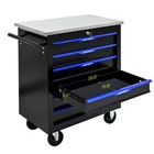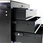 Features and Details: 6 drawers with wheels multi-purpose tool car, black and blue color with more durable The tool box is also lockable and can be used as a removable, attachable and mobile case The opening and closing of the drawers of the tool cabinet is very gentle thanks to the ball-bearing drawers The robust and powder- coated steel construction is used for high wear resistance. This assembly trolley has 4 steering wheels, 2 of which with parking brakes, so you can move the trolley freely in the garage, but also stop in one place This is a set of cabinets, can use a round hook at the bottom of the table to connect another tool car, thus forming a combination. Smooth steel countertops are cleaner and more durable. Specification: Color: Black+Blue Material: Cold Rolled Steel Surface Finish: Powder Coating Powder Coating: 4" Casters (2PCS with brake and 2PCS without brake) Item Size (with wheels and countertops) : 25.91*13.58*26.46INCH Size (with countertops): 25.91*13.58*25.98ICNH Item Weight: 59.52LBS