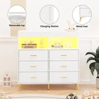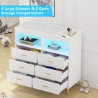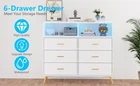 Dresser for Bedroom with 6 Drawers, Wide Wood Chest of Drawers with Changing Table Top, Baby Changing Table Dresser for Infants with LED Lights, Charging Station & Changing Pad, White ❤️ Specifications: Color: White Size :43.3"Lx 17.71"Wx 41.34"H Brand: Jojoka Material: Wood Number of Drawers: 6 Item Weight:119.3 pounds Special Feature: LED Light Strip, Charging Station ❤️ Features: 【Baby Changing Table with Changing Pad】 : Parents can change the little one's clothes and diapers conveniently on the changing table top. The height of 41.34 inches can reduce the stress caused by bending over when parents are changing diapers and dressing the child. 【Attractive Design】 : This kids dresser with LED light strip and built-in power outlet combines functionality and style. The light color and intensity are adjustable, which can set the perfect lighting mood for any scene. The metal feet design and metal pulls not only provide convenience, but also make the white dresser more attractive. 【Use as a Chest of Drawers】 : Remove the changing top from the baby dressers for nursery, it becomes a 6 drawer dresser. This large top can hold vases, lamps and other items. You can put it in the bedroom as a dresser, in the living room as a TV stand, in the kitchen for kitchenware, suitable for a variety of places. 【Solid and Sturdy Material】 : This nursery dresser is carefully crafted from MDF, which ensure its excellent solidness and durability. All the materials we use are odorless, safe and harmless to baby's health. We also equipped with anti-tipping strips that can prevent the diaper changing table from tipping over to ensure safety. 【Overall Size】 : The baby changing table dresser measures 43.3 inches (L) x 17.71 inches (W) x 41.34 inches (H). 【Drawer size】 : 20.47 inches (L) x 15.43 inches (W) x 7.67 inches (H). 6 drawer cabinet, each drawer can hold 33 pounds, the top can hold 176 pounds. ❤️ Product Description 📦 Package Included: 1 x Dresser 1 x User mannual 🏙️About us We are a large and competent e-commerce company with more than ten warehouses in the US.We have provided millions of products for our customers! We focus on the use and performance of our products, providing quality and affordable products, we value every customer's feedback on our products and services, and are committed to building a premium product line. 🚚 About Shipping After receiving payment, we will process your order within 1 working day (excluding weekends),and it will takes about 5-10 days to arrive. ☎️After Sales All items will be strictly inspected before being shipped,but we cannot determine what will happen to them during transportation.We hope that all our buyers can receive complete package.If you have any questions when receiving the items,please feel free to contact us at any time and we will do our best to solve the problem for you.