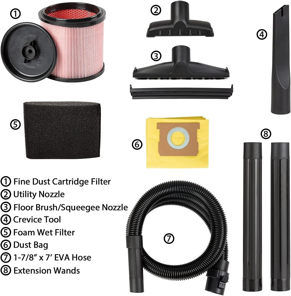 Efficient Indoor Cleaning: 6-Gallon Wet/Dry Vacuum with On-Board Storage ‹ › ‹ › ‹ › ‹ › ‹ › ‹ › ‹ › ‹ › Efficient Indoor Cleaning: 6-Gallon Wet/Dry Vacuum Experience the perfect blend of power and convenience with this 6-gallon wet/dry vacuum, designed to handle the toughest clean-up tasks with ease. Features: Powerful Performance: Equipped with 4.5 Peak HP and a robust 6-gallon polypropylene tank, making it ideal for both job sites and household tasks. Versatile Functionality: Easily converts into a blower for cleaning your workspace or yard, providing maximum utility and efficiency. User Actuated Filter Cleaning System: Maintains high suction levels by preventing filter clogs. Clean the filter effortlessly without interrupting your work. On-Board Storage: Keep attachments organized with convenient on-board hose, cord, and accessory storage, ensuring everything you need is always within reach. Multiple Accessories Included: Comes with a comprehensive set of accessories, including (1) 1-7/8-inch x 7-foot EVA Hose, (2) Extension Wands, (1) Floor Brush/Squeegee Nozzle, (1) Utility Nozzle, (1) Crevice Tool, (1) Dust Bag, (1) Fine Dust Cartridge Filter, and (1) Foam Wet Filter. Why Choose Our 6-Gallon Wet/Dry Vacuum? This vacuum is not just another cleaning tool; it represents a commitment to efficiency and simplicity. With unparalleled suction power and a thoughtful filtration system , it ensures that your cleaning routine remains uninterrupted. The compact design makes it easy to store without sacrificing performance or versatility, and the multiple accessories make it suitable for every cleaning task imaginable. Invest in a cleaning solution that aligns with your busy lifestyle and meets your every requirement. Order now and elevate your cleaning game! Shipping Free & Fast Shipping - We offer free shipping to most of the USA with a normal delivery time of 3-7 days. However, due to the current situation, additional delivery time (up to 3 weeks) may be required for some items. Alternative Carriers - We may use alternative carriers (e.g. USPS, FedEx, UPS, etc.) to ensure your package arrives safely and on time. Due to the use of multiple carriers, we are unable to provide a tracking number automatically. Handling Time - Orders are processed and shipped within 1-2 business days of receiving cleared payment. Shipping Restrictions - Shipping to Alaska, Hawaii, Puerto Rico, Guam, and other US territories may incur shipping charges or delivery restrictions. Please contact us before ordering, or your order can be refunded/cancelled. State Restrictions - There may be restrictions based on your state of purchase. For example, certain items may not be shipped to California due to state regulations. Contact for Tracking Updates - If you require tracking updates or have any concerns about the delivery of your order, please feel free to contact us, and we will be happy to assist you. Return 30-Day Hassle-Free Returns - We want you to be completely satisfied with your purchase. If you are not, you can return the item within 30 days of receiving it for a full refund or exchange. Easy Return Process - To start a return, simply contact us and we will provide you with a prepaid return shipping label and detailed instructions. Restocking Fee - There are no restocking fees for returns. However, the buyer is responsible for return shipping costs if the return is not due to a seller's error. Refund Processing Time - Refunds will be processed within 5 business days of receiving the returned item in its original condition. Payment We accept all major credit cards, PayPal, and Apple Pay for your convenience. Your payment information is secure and encrypted to ensure a safe and seamless transaction. Please complete your payment within 3 days of purchase to avoid any delays in shipping. Feedback Your feedback is extremely important to us. We strive to provide the best products and customer service possible. If you are satisfied with your purchase, please take a moment to leave us a positive review. If you have any concerns or issues with your order, please contact us before leaving negative feedback. We are committed to resolving any problems and ensuring your satisfaction. Contact Us If you have any questions or concerns, please feel free to reach out to our customer support team. You can contact us through the eBay messaging system. We are available Monday to Friday, 9:00 am to 5:00 pm EST, and we will do our best to respond to your inquiry within 24 hours. Thank you for supporting our small family business! UPC: Not Set Unit Quantity: 6 Features: Portable,On-Board Storage,Wet/Dry Functionality,Compact Design,Blower Function,4.5 Peak HP Motor Included Accessories: Crevice Tool,1-7/8-inch x 7-foot EVA Hose,Extension Wands,Floor Brush/Squeegee Nozzle,Utility Nozzle,Dust Bag,Fine Dust Cartridge Filter,Foam Wet Filter,2 Extension Wands,1 Floor Brush/Squeegee Nozzle,1 Utility Nozzle,1 Crevice Tool,1 Dust Bag,1 Fine Dust Cartridge Filter,1 Foam Wet Filter Brand: Unbranded Type: Canister/Cylinder Model: Wet/Dry Vacuum Smart Home Protocol: Not Set Runtime: Not Set Smart Home Compatibility: Not Set Charge Time: Not Set MPN: Not Set Color: Black Power: 1320 W Filters: Cartridge Voltage: 120 V Capacity: 6 gallons Country/Region of Manufacture: Not Set Protection Plan: No Coverage Item Weight: 9.12 kg Manufacturer Warranty: Not Set Unit Type: Unit Cord Type: Not Set Bagged/Bagless: Not Set