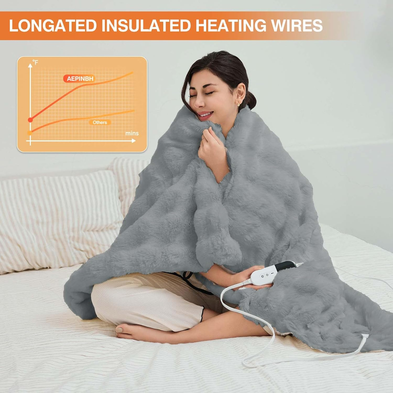 Store New Arrivals Add to Favorite View Feedback Contact Heated Blanket Throw with 6 Fast Heating Levels,4 Hours Auto-Off,50X60 Cozy Faux Rabbit Fur Bubble Washable Electric Blanket with Overheating Protection,Etl Certification(Light Gray) Description Style Modern Number of Items 1 Pattern electric blanket Country of Origin China Blanket Form Throw Blanket Theme electric blanket Product Dimensions 50"L x 60"W Material Faux Fur Age Range (Description) electric blanket Seasons Winter, Fall Animal theme Rabbit Water Resistance Level Not Water Resistant Item Weight 4.97 pounds Fill Material Faux Fur Special Feature electric blanket, Heated Blanket Fabric Warmth Description Heavyweight Color Light Gray Recommended Uses For Product Reading, Napping Fabric Type Faux Fur Product Care Instructions Machine Wash Size 50"X60" 【Safety First】Our electric blanket prioritizes safety. It has been certified by ETL and FCC, equipped with an over - heat protection device, and is safe to be machine - washed. The unique ultrasonic heat - sealing and laminating technologies endow it with excellent insulation and fire - resistance, enabling you to bid farewell to safety hazards. (Enjoy worry - free warmth) 【Rapid Heating】With advanced heating technology, this electric blanket can quickly warm your bed. The evenly - distributed PTC + NTC double - helix wires ensure stable and even heat generation, and the powerful insulation and flame - retardant properties further guarantee safety, bringing warmth instantly. (Warm your bed in no time) 【Convenient to Use】Our heating blanket offers six customizable temperature settings and a user - friendly auto - off timer with options ranging from 1 to 4 hours. The temperature range is from 86 to 122 degrees Fahrenheit, helping you easily create your own personalized comfort experience. (Easily customize warmth) 【Flexible and Comfortable】The LED controller with a digital display allows you to freely select the temperature and time according to your preference, easily customizing the sense of comfort. The electric blanket made of 400 - GSM fluffy faux - rabbit - fur material is soft to the touch. The 10 - foot power cord makes it perfect for use at home, in the office, on the bed, or on the couch, ensuring that you are always comfortable, warm, and completely relaxed. (Warm anytime and anywhere) 【Ideal Gift】This warm blanket is an excellent gift for birthdays, Christmas, and New Year's Day. On cold winter nights, it can create a soft and warm atmosphere and bring a comfortable sleeping experience, making it an ideal choice for expressing your care to your loved ones. We also provide 7×24 - hour after - sales support, ready to solve your problems at any time. (Deliver warmth and care) Product Description The video showcases the product in use. The video guides you through product setup. The video compares multiple products. The video shows the product being unpacked. ABOUT US We offer the best prices around on high quality products. Our E-store includes media such as books, movies, music and games while offering electronics, toys, sporting apparel, clothing, tools, general home, garden items and more. SHIPPING We are always working hard to ensure your package arrives as soon as possible. Please understand that some factors like weather, high postal traffic, and the performance of shipping companies are outside of our control. We offer free shipping to the lower 48 states and ship within 2 business days of payment, usually sooner. We do not accept P.O. Boxes. Please provide a physical address. For shipping outside of the continental USA, we only use eBay's Global Shipping Program.The item is shipped to KY and then sent to the rest of the world. International customers are responsible for all duties and taxes. Continue to check out in order to calculate costs for shipping the item to your country. Messages regarding eBay's Global Shipping Program MUST be directed at eBay EXCLUSIVELY. RETURNS We offer a 30-Day Return Policy on items which you are not completely satisfied with. You have the option for a full-refund or an exchange of the item. No returns are available on items shipped outside of the USA. PAYMENT We accept PayPal. CONTACT US This page content is yet to come Please ad us to your favorite seller and visit again later Thank You CUSTOMER SATISFACTION We try our very best to make sure every customer is completely satisfied. If there's a problem, message us! We're happy to help.