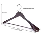 Nature Smile Luxury Mahogany Wooden Suit Hangers - 6 Pack - Wood Coat Hangers,Jacket Outerwear Shirt Hangers,Glossy Finish with Extra-Wide Shoulder, 360 Degree Swivel Hooks & Anti-Slip Bar with Scre Color: Mahogany Size: 17.5 inches 6 pack Color Mahogany Brand Nature Smile Material Lotus Wood Product Dimensions 17.5"W x 9.5"H Special Feature Anti Slip, Anti Rust, Heavy Duty About this item Solid Wood Constructions – Set of 6 coat hangers are well crafted of premium quality solid Lotus wood. The smooth Mahogany finish provides a captivating look to your closet. Single suit hanger size is 17.5 X 9.5 X 2.3 inch. Extra Wide Shoulder Design – The wide shoulder design of the coat hangers provides ample support to your suits, coats and other kinds of clothes, distribute garment weight evenly and preserves collars and drape to ensure suits and coats maintain their tailor-made shape. 360 Degree Swivel Hook - The hook of wood coat hangers is chrome-plated and A 360 degrees retotating design enabling users to easily turn the hanger sideways to check out garments without even removing them from the clothing rack. More sturdy to hang heavy clothes. Non Slip Bar with Screw – The bar has been fixed with a screw that make it sticked with the hanger firmly. And the bar is fitted with a grooved non-slip rubber tube that prevent trousers and skirts from slipping off and creasing or wrinkling. Solid Box – We use solid box to pack these coat hangers to ensure they are well protected during shipping. All products are guarranteed. Shorter design 16.1''L for women is also available (Item does not ship to Miami&Doral, FL), have any problem please contact us !