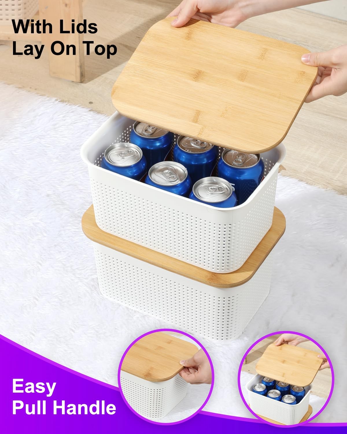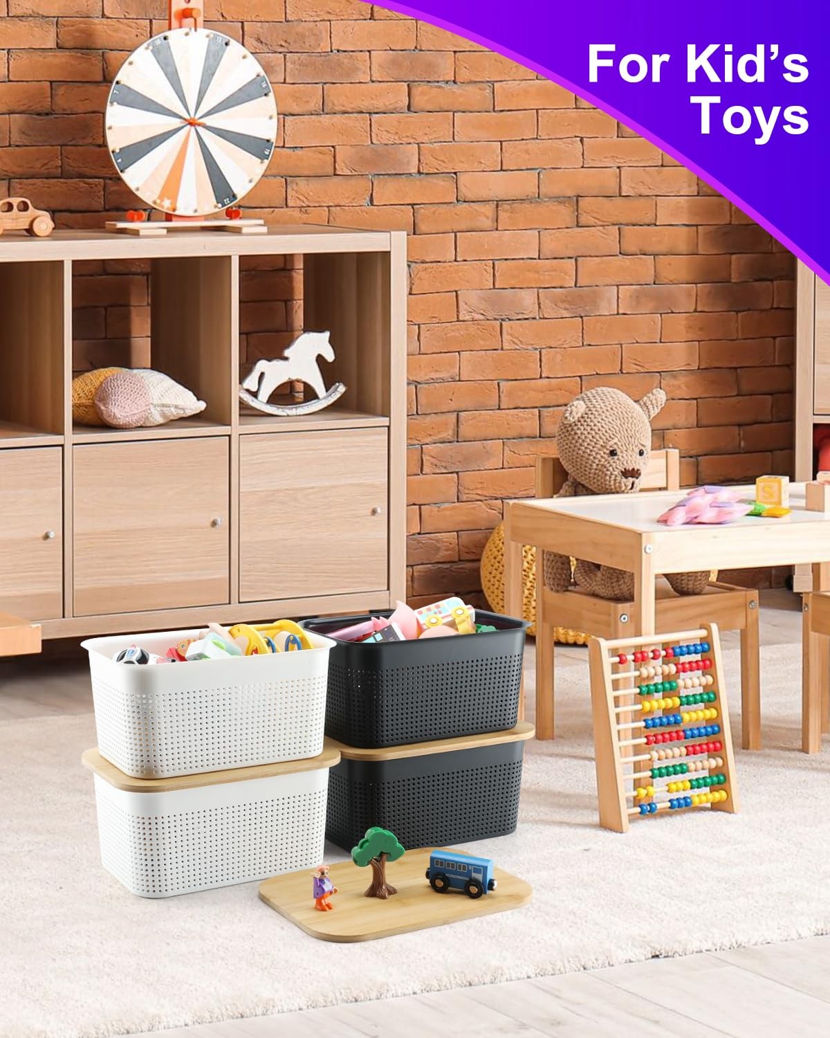 $ 20.51Plastic Storage Bins with Bamboo Lids Stackable Small Box Baskets for Organizing