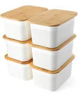 This plastic storage baskets with lid are great solution for any space such as kitchen supplies or dry goods in the pantry such as food packets, flavors, baking supplies, snack bags, boxed foods, canned goods and more. Great for organizing everything from toiletries to stationery, it has great uses in beauty supplies, small tools, hobby and craft parts. Dimention: 10.8"L x 7.3"W x 5.1"H Inches 【High Quality and Safe 】:These plastic storage bins with lids are made of high quality PP5 plastic and natural premium bamboo, BPA free and durable. It is one of the longest lasting storage baskets with lids.Helps you organise and store more items for your storage needs! 【Combine Natural Stylish and Practical】: These baskets for organizing are perfect for home decoration with natural sentiment.It's great for storing all kinds of household items in closets, cabinets, bookshelves, classrooms, living rooms, bedrooms, bathrooms, offices and garages.It would also make an excellent choice. 【Stackable with Lids】:These stackable storage bins ensure stability and allow organisers and storage to be securely stacked for easy moving and space saving in your house, apartment or condo.It's a good choice for closet organizers and storage solutions. 【Simple To Use】:These storage bins with bamboo lids use lift-off lids, so you can simply pick up the lid and put it down to organize your items.These small storage containers are also easy to clean, just rinse with water and wipe clean. 【SATISFACTION GUARANTEED】: Storage bins with bamboo lids are great for Birthday days, Mother's Day, Father’s Day and Christmas,We value your satisfaction above all else. If you have any questions, comments or concerns, please feel free to contact us.