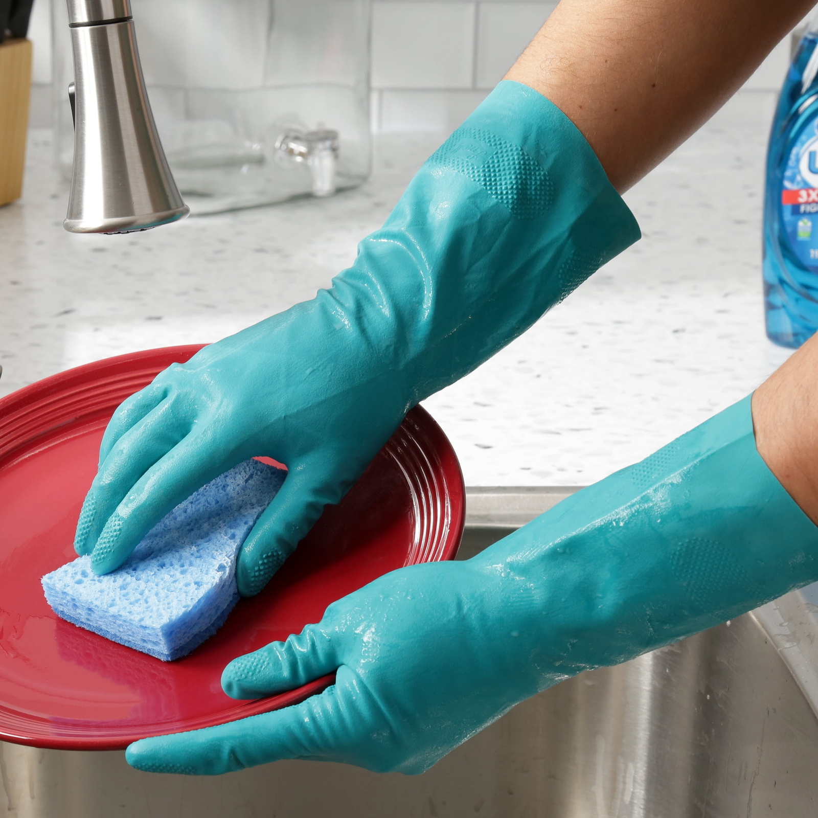 Keep your hands safe, healthy, and youthful with the Value Latex Multi-Purpose Reusable Household Gloves. When not properly protected while cleaning, harsh cleaning chemicals can dry out and irritate the skin, leading to wrinkles and redness, and bacteria and dirt can easily enter cuts and scrapes, causing infections. These versatile reusable gloves provide superior protection for your hands, keeping them comfortable and dry, and shielding them from toxic cleaning chemicals and messes in the kitchen, house, garage, and more. In addition to cleaning, these flexible-fitting gloves are perfect for other tasks such as nursing, painting, cooking, first aid, pet care, gardening, and more. Made from premium BPA-free latex, these reusable household gloves are safe for your skin and long-lasting. The velvet lining makes it easier to put on and take off, while the non-slip handles provide a secure and firm grip. Measuring 9-1/4 inches long, these teal medium gloves are reusable, keeping you safe while cleaning and completing other household chores. Provides superior protection from harsh chemicals, dirt and bacteria while cleaning Also great for a of tasks such as pet care, painting and cooking Flexible fit with velvet lining for easy on and off Non-slip handles for a secure grip Made with BPA-free latex for skin safety and long-lasting durability