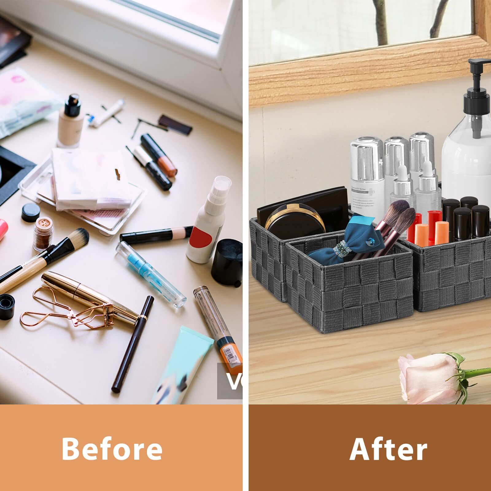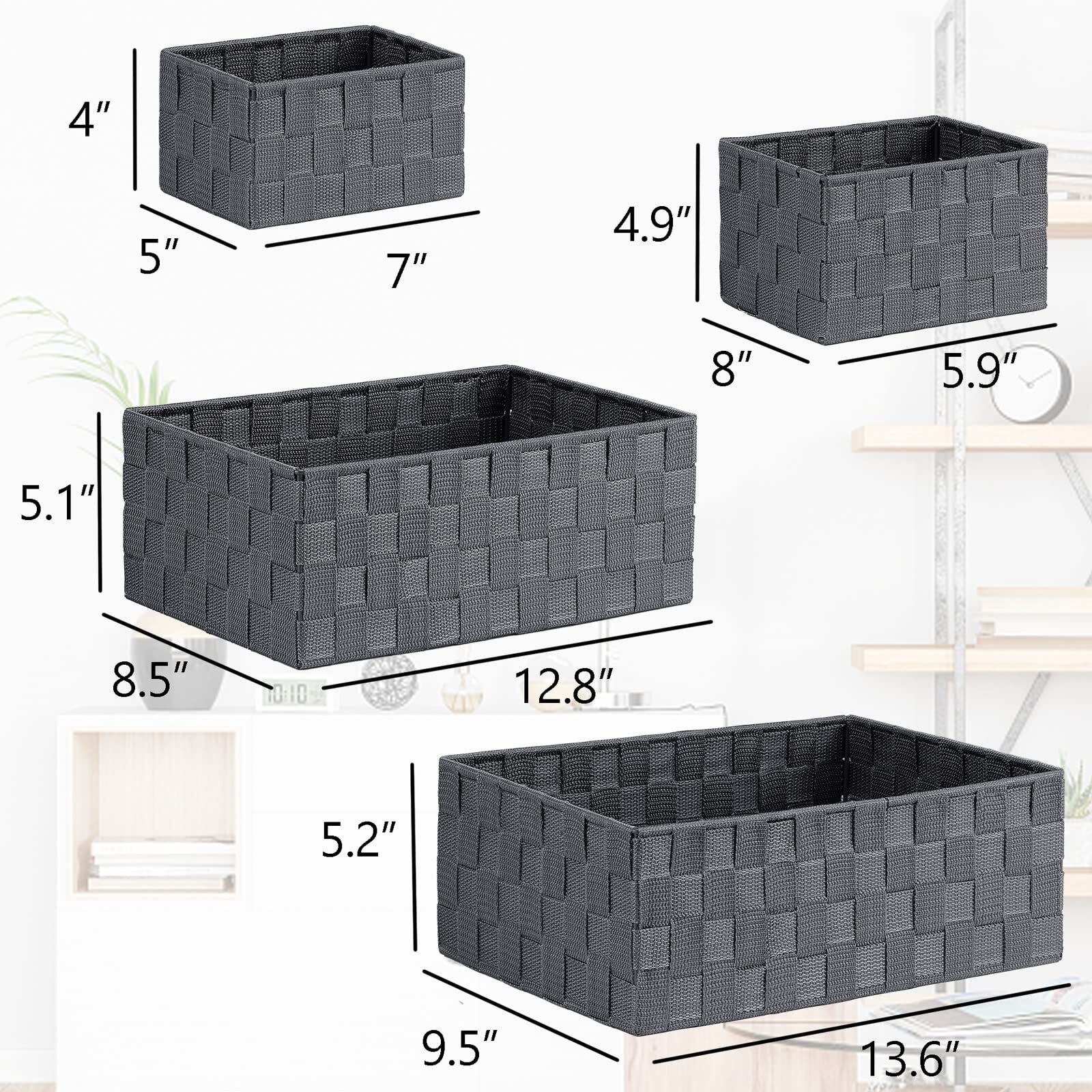 Posprica Woven Storage Baskets for Organizing 6 Pack, Large&Small Storage Cube Bins Set for Bathroom, Storage Boxes Container for Drawer, Closet, Shelf, Dresser, Dark Grey Woven Baskets for Organizing: This desk organizer drawer is hand-woven with polypropylene yarn. The frame of all woven organizer bins is inserted with steel wire, enough firm and not easy to be distorted like cloth drawer, sturdy and durable. 6 Pcs Woven Basket Bins: Provides attractive, lightweight storage while keeping household items tidy and organized — Set includes 6 utility baskets of various sizes. Excellent Space Storage : Used as a drawer divider or use each cube individually to store various related products. The different compartments fit your needs perfectly. Decorative basket ideal for living room, bedroom, bathrooms, utility room, kids room, craft room, office, closet, kitchen, condos, laundry room, bar cabinet storage, toilet. Multiple Use: As storage in the bathroom it holds extra tissue, towel and toilet, combs and brushes, manicure set and hair clips and many other uses. To clean, simply rinse with water, but please dry in the air before use. Package Include: Set of 6 storage containers, 1 extra large size: 13.5in x 9.4in x 5.1in; 1 large size: 12.7in x 8.5in x 5in ; 2 medium sizes : 7.8in x 5.8in x 4.8in; 2 small sizes :6.5in x 4.9in x 3.9in. Posprica Woven Storage Baskets Material: Polypropylene Colour: Grey Technology: Hand-Woven Set of 6 storage baskets, 1 extra large size: 13.5in x 9.4in x 5.1in; 1 large size: 12.7in x 8.5in x 5in ; 2 medium sizes : 7.8in x 5.8in x 4.8in; 2 small sizes :6.5in x 4.9in x 3.9in. This desk organizer drawer is hand-woven with polypropylene yarn, The frame of all woven organizer bins is inserted with steel wire, enough firm and not easy to be distorted like cloth drawer, sturdy and durable. Used as a drawer divider or use each cube individually to store various related products. The different compartments fit your needs perfectly. In the bath it holds extra tissue, combs and brushes, manicure set and hair clips. On the nightstand it holds your phone, meds, writing tablet, pen holder, and packets of facial tissue & more hair clips! Decorative basket ideal for living room, bedroom, bathrooms, utility room, kids room, craft room, office, closet, kitchen, condos, laundry room, bar cabinet storage, toilet. They will really make a very nice presentation for Birthday or Christmas! To clean, simply rinse with water. Tips:Please dry in the air before use Shipping We offer FREE shipping on all orders! We ship within Three business days of payment, usually sooner. We use a selection of shipping services such as UPS, FedEx, USPS etc. We only ship to the lower 48 states, no APO/FPO addresses or PO Boxes allowed. Local pickups and combined shipping options are not provided at this time. International buyers – please note: Import duties, taxes, and charges aren't included in the item price or postage cost. These charges are the buyer's responsibility. Please check with your country's customs office to determine what these additional costs will be prior to bidding or buying. Order Cancellation Policy * Order Cancellation Policy ** You can return a product for up to 30 days from the date you purchased it. 1. The seller reserves the right to cancel the special case only due to eBay cancellation fee. 2. The decision of seller is the final. 3. The seller will respond to the cancellation request within 2 business days. Please wait for the result of cancellation. 4. In case the cancellation is not completed by some reasons, the buyer can follow the options below to get the refund. 4.1 The buyer can reject the item when it arrives. 4.2 The buyer can send the item back to the seller within 30 days If the buyer receives item (USA Shipment ONLY). The seller will provide the FREE return label to the buyer when the buyer opens " Return Item" case on eBay by using the reason as "Change my mind" ONLY. 5. When buyer has placed the order. The order will be processed and completed by automatic warehouse system within 5 minutes. In case that buyer sends the cancellation request after 5 minutes of placing the order, the request will be rejected. **Sending direct message to cancel the order is not allowed for every case.* Return Policy - If buyer would like to return the items for refund or replacement, please CONTACT SELLER to receive the free return label from seller. The refund or replacement will be processed with the tracking number of return label which is provided by seller only. The other ways of return which are not approved by seller will not be processed for the refund or replacement. Return You can return a product for up to 30 days from the date you purchased it. Any product you return must be in the same condition you received it and in the original packaging. Please keep the receipt. Payment We accept payment by any of the following methods: eBay Payments Please pay as soon as possible after winning an auction, as that will allow us to post your item to you sooner! Feedback Customer satisfaction is very important to us. If you have any problem with your order, please contact us and we will do our best to make you satisfied. Contact Us If you have any queries, please contact us via ebay. We usually respond within 24 hours on weekdays. Please visit our eBay store to check out other items for sale! Thank you for shopping at our store.