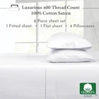 6-Piece Sheet Set with 4 pillowcases - 100% Cotton 400 Thread Count long-lasting white Queen size bed sheet set includes 1 Flat Sheet (90" W x 102" L), 1 Fitted Sheet (60" W x 80" L + 16" Deep Pocket), and 4 Roomy Pillowcases (21" W x 30" L with envelope closure). Our cotton sheets feature an all-around elastic for a perfect snug fit and are durable to withstand fading, pilling and wrinkling. Savor Your Sleep - Experience the softest, coolest, and most breathable 100% pure, long-staple cotton. Our cooling fine linen 400 thread count cotton bed sheets set are carefully handcrafted and firmly stitched for perfection. Hotel Quality Comfort - Fitted deep pocket cotton sheets for Queen size beds promise a snug fit, and feature smart head & footer tags to save time. The hotel signature sateen weave makes this your most comfortable bedding set. NO HARMFUL SUBSTANCES & EASY TO MAINTAIN: It’s easy to take care of our 100% cotton sheets. Toss them in a machine for a quick wash. These queen sheet sets become softer with every rinse—and do not shrink, , and fade. They are also independently tested and certified as STANDARD 100 by OEKO-TEX® to be free from harmful chemicals. OUR COMMITMENT: In 2022 & 2023, we donated over 22,000 pieces of bedding to local charities in the USA. We do not use plastic in our packaging, and our sheets are produced in our family-owned and operated factory in India. Each piece is inspected for quality, and we promise to replace any defective products at no cost to you. Buy with confidence with our 30-day return policy, even if you've washed or used our product.