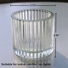 Glass Votive Candle Holders Bulk [Votive Candle Holders 6pcs]: Large votive candle holder are heavy weight of 0.47lb each, dimension 2.75 x 2.56 inch (W/H), suitable as centerpieces for outdoor and indoor events, with tea light candles, votives, small hurricane candle and more(Candle not included) [Clear Tealight Candle Holders]: Ribbed glass shape design votive candle holder, embossed texture make you feel tasteful and retro of the tealight candle holder. These votive holders should be your good idea for Fall & Winter decorations for home and important occasions center pieces [Clear Glass Materials Solid & Sturdy]: The tealights holder made of clean and heavy glass, make sure every single votives glass candle holder is high quality enough to support daily use, including inside and outside events using tea lights candle holder, such as Birthday, Anniversary, Party, Feast and etc [Season Gift for Her Women Friends]: These clear color votives holders are crystal and functional, works as home decor on table, windowsill, fireplace top, especially use the tealight holder on Halloween, Christmas Day, the votive holder attract more touch for you [Safe Packaging Tealight holders]: these votive candle holders are double boxed and wrapped in bubble wrap. If there are breakage problems or others of the votive candles holders, just click and message Amwo. We will get a satisfying solution out to you shortly on the tea light holder Vintage line ribbed pattern glass votives Favorable gift for Thanksgiving, Halloween, Christmas
