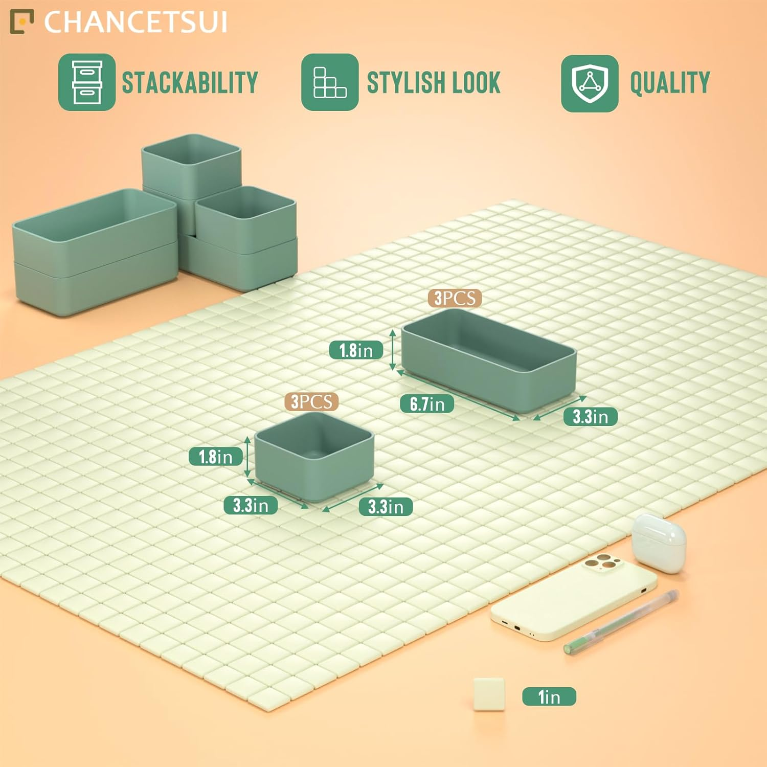 Store New Arrivals Add to Favorite View Feedback 6 Pcs Stackable Drawer Organizer Set Desk Drawer Dividers, Bathroom Vanity Cosmetic Makeup Trays , Multipurpose Plastic Storage Bins for Jewelries, Kitchen Gadgets and Office Accessories, Green Description Item model number US-SDO6-2Size-Forest green Part Number US-SDO6-2Size-Forest green Batteries Required? No Finish tint Number of Items 6 Color 6-2Green Brand CHANCETSUI Product Dimensions 10.43"D x 3.58"W x 5.3"H Material PET Plastic Mounting Type Tabletop Mount Item Weight 0.76 Kilograms Item Weight 1.67 pounds Manufacturer CHANCETSUI Shape Square Batteries Included? No Number of Compartments 6 Unit Count 26.4555 Ounce Size 6-2Green Finish Type tint Specific Uses For Product function(f) {var _np=(window.P._namespace("DetailPageProductOverviewTemplatesJava"));if(_np.guardFatal){_np.guardFatal(f)(_np);}else{f(_np);}}(function(P) { P.when('A').execute(function(A){ A.on('a:truncate:po-attribute-truncate-0:updated', function(data) { var isTruncated = !data.truncateInstance.getIfTextFits(); var seeMoreElement = document.getElementById('po-attribute-see-more-id-0'); if(seeMoreElement) { seeMoreElement.style.display = isTruncated ? '' : 'none'; } }) }); })); Clothing,Cosmetics,Bathroom,Kitchen,Toiletries,Utensils,Cosmetics, Accessories, Crafts, Jewelry,Tools See more Included Components 6 pack Stackable drawer organizer bins 【6 Pcs Set 】 These versatile stackable drawer organizer are perfect for any place in your office or home. Package includes : 3.35 x 3.35 x 1.77'' (3 pcs), 3.35 x 6.6 x 1.77'' (3 pcs). 【Customize and Stackable】Individual storage bins can be used to separate your messy drawer and fit all kinds of drawers, such as vanity, bathroom, kitchen, and office drawers. You can customize the layout of the drawer organizers to suit any specific needs. 【Sturdy and Durable】 The desk drawer organizer trays set are made of durable and environmental PET plastic, ensuring a long life of use. Drawer organizer bins are break-resistant and could accommodate different items keeping the organiser nice and steadily stacked. 【Stackable and Space Saving】These stackable drawers are designed to save space, which can be used together or separately, so that you can efficiently organize your desk drawers and space. The drawer organizers can save your time to organize and find your stuff. 【Easy to Clean】 These desk drawer storage bins are easy to be wiped clean with a damp cloth. It is very convenient to keep your desktop tidy and easy to find items in the drawer to save time. Making everything look beautiful and better organized. Product Description ABOUT US We offer the best prices around on high quality products. Our E-store includes media such as books, movies, music and games while offering electronics, toys, sporting apparel, clothing, tools, general home, garden items and more. SHIPPING We are always working hard to ensure your package arrives as soon as possible. Please understand that some factors like weather, high postal traffic, and the performance of shipping companies are outside of our control. We offer free shipping to the lower 48 states and ship within 2 business days of payment, usually sooner. We do not accept P.O. Boxes. Please provide a physical address. RETURNS We offer a 30-Day Return Policy on items which you are not completely satisfied with. You have the option for a full-refund or an exchange of the item. No returns are available on items shipped outside of the USA. PAYMENT We accept PayPal. CONTACT US This page content is yet to come Please ad us to your favorite seller and visit again later Thank You