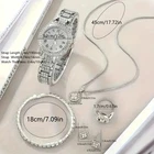 Title 6-Pieces: Elegant Women's Jewelry Set with Quartz Roman Numerals Watch PRODUCT DESCRIPTION Discover the perfect blend of sophistication and versatility with our 6-Pieces: Elegant Women's Jewelry Set with Quartz Roman Numerals Watch. Expertly crafted from high-quality zinc alloy, this stunning set features sparkling rhinestone embellishments that add a touch of glamour to any outfit. At the heart of this collection is a luxurious Quartz watch with classic Roman numerals, offering a timeless and refined aesthetic. Its simple yet elegant design makes it an ideal accessory for both everyday wear and special occasions. The watch's precise quartz movement ensures reliable timekeeping, combining style with functionality. This versatile 6-piece set includes complementary jewelry pieces that perfectly match the watch, allowing you to elevate your look effortlessly. Whether you're dressing up for a formal event or adding a chic touch to your casual attire, this set provides the perfect finishing touch. Premium Materials: Zinc alloy construction with dazzling rhinestone accents Elegant Style: Classic Roman numerals on the watch face Complete Set: Six beautifully coordinated jewelry pieces Timeless Design: Suitable for any occasion, from daily wear to special events Perfect Gift: An ideal present for loved ones or a luxurious treat for yourself Elevate your jewelry collection today with this exquisite set and make a statement that reflects your timeless fashion sense. Don't miss out—add this elegant 6-Pieces Women's Jewelry Set to your cart now! Powered by