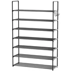This shoe rack is a game-changer! Sturdy metal frame holds up to 30 pairs without wobbling, and the adjustable shelves fit all shoe sizes. The hooks are perfect for hanging bags or hats. Super easy to assemble and looks sleek in our entryway. No more messy piles—total space saver and worth every penny!
