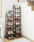 This shoe rack is a game-changer for small spaces! The rustic brown and black design looks stylish, and the six tiers hold plenty of shoes without taking up much floor space. I love the adjustable shelves and the two handy hooks for extra storage. Assembly was quick, and it feels sturdy once set up. Perfect for closets, entryways, or tight corners—highly recommend for keeping shoes organized!